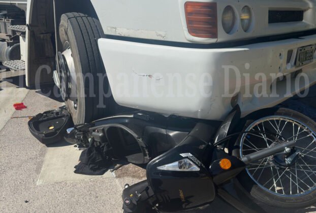 Camión embistió a una moto en San Martín y Andrés Del Pino