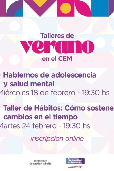 El miércoles 18 de febrero se dictará un taller referido a “Adolescencia y la salud mental” y, el martes 24, sobre “Hábitos: Cómo sostener cambios en el tiempo”. Ambos encuentros serán en el Centro Educativo Municipal y requieren inscripción previa. El Centro de Día Cosmopolita, dependiente de la Secretaría de Salud del Municipio, sigue adelante […]