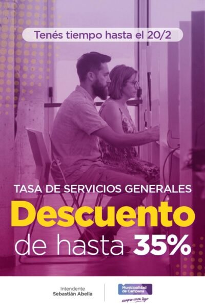 El Municipio lanzó descuentos de hasta el 35% para el pago de la Tasa de Servicios Generales