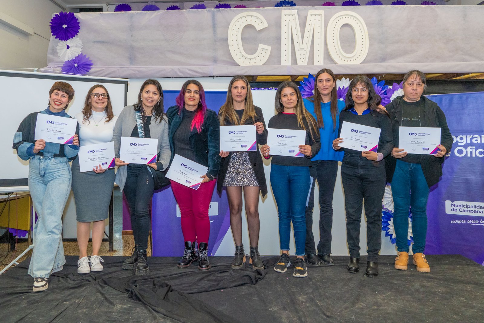 El acto de entrega de certificados contó con la participación de la subsecretaria de Cultura y Educación, Nancy Bianchi, la directora de Educación, Mariana Brutti, la coordinadora del Anexo del CMO, Mariela Contreras y los docentes Marina Padovani, Andrea Burgueño, Daniela Escobar, Darío Follonier y su asistente Yair Mendieta, Patricia Franco y Claudia Maíz.