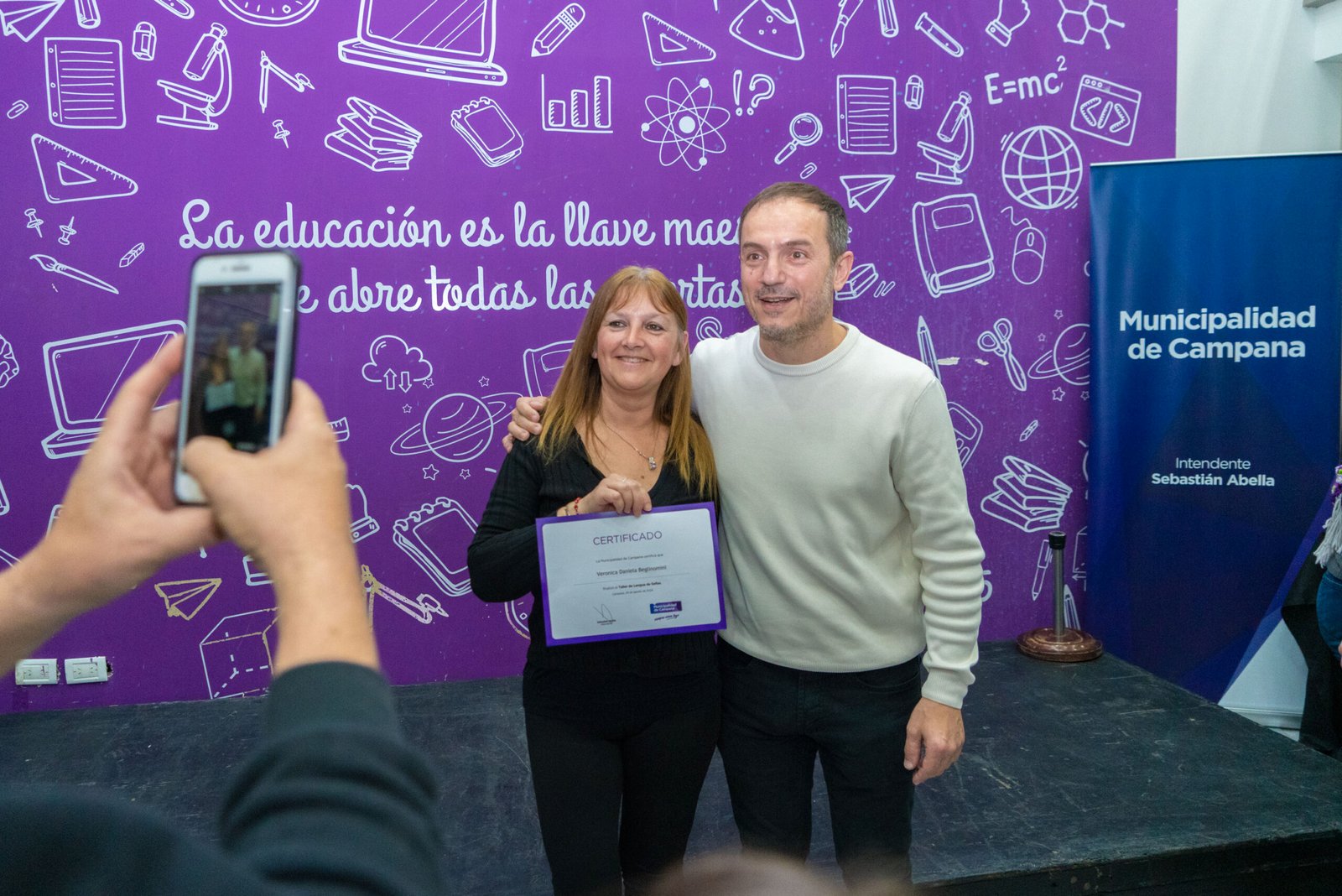 La capacitación finalizó con la entrega de certificados, que estuvo a cargo del intendente Sebastián Abella quien, junto a la directora de Educación, Fernanda Lago, felicitó a cada uno de los alumnos por su gran compromiso y responsabilidad