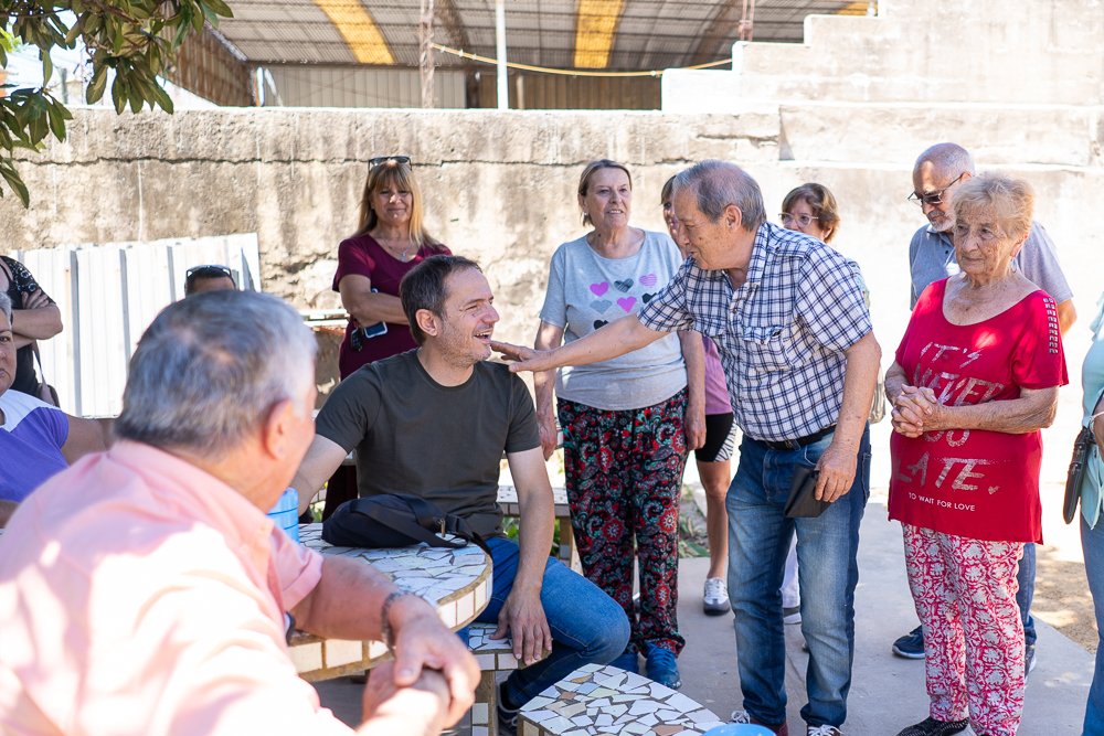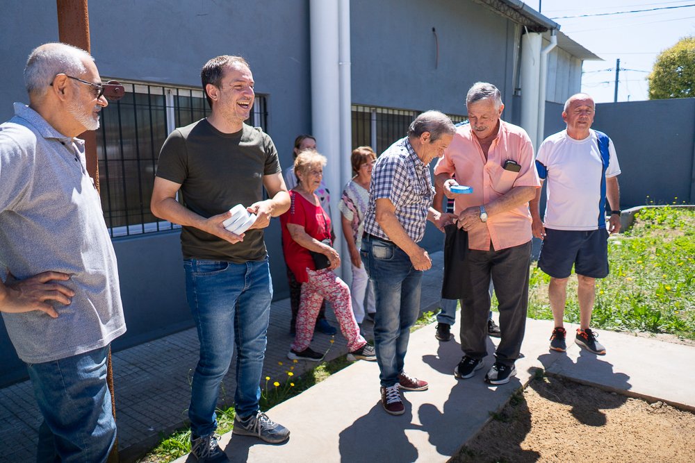 El intendente Sebastián Abella acompañó este miércoles a los integrantes de la Asociación de Jubilados de la calle Pueyrredón en el estreno de su nueva cancha de tejo, construida con la ayuda del Municipio.