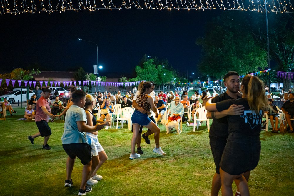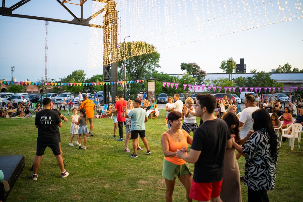 En el marco del programa municipal “Cultura Cerca Tuyo”, la zona del Puente Grúa se transformó en una gran pista de baile de la mano de los profes Fer y Mica. Los presentes también disfrutaron de los boleros de Alejandro Villalba.