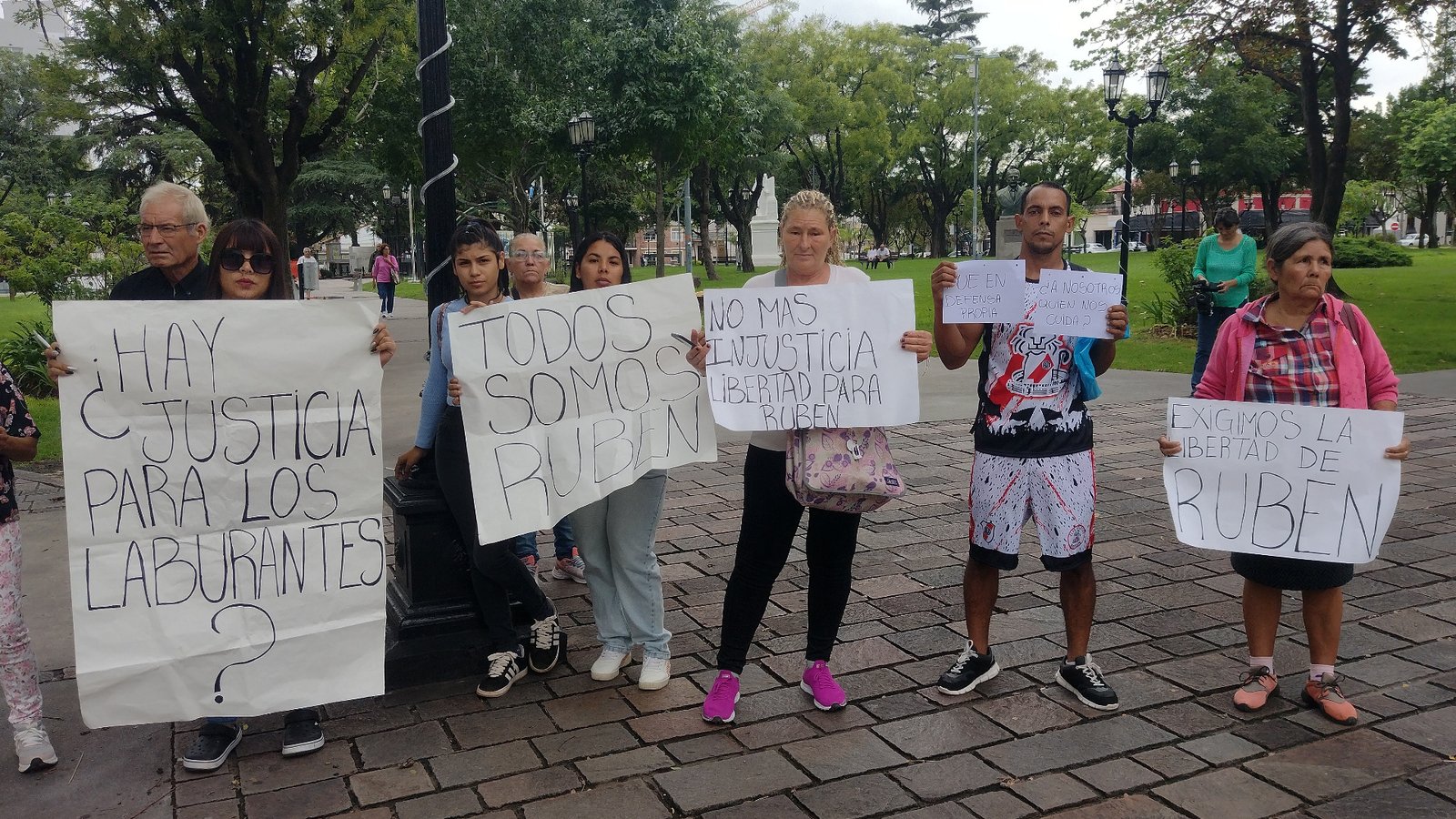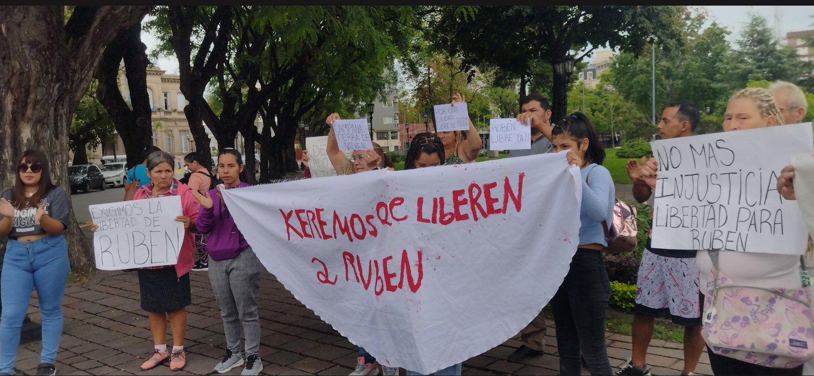 Familiares, vecinos y allegados del vecino Rubén Abramsson se manifestaron en la plaza Eduardo Costa para exigir su liberación alegando que el hecho se dió en legítima defensa luego de la confrontación que mantuvo con un delincuente que había ingresado a robar a su casa del mismo barrio Las Praderas.