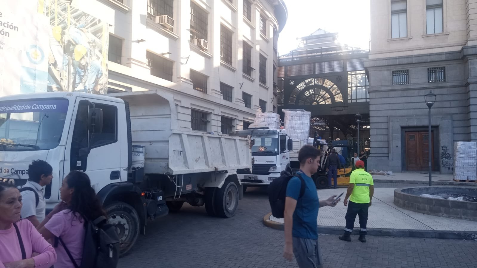 Puntualmente, un camión municipal recolectó todos los donativos recibidos en el Club América, Campana Boat Club y Sociedad de fomento Barrios Amigos para luego trasladarlos a la estación de Constitución, desde donde partió un tren con donaciones.
