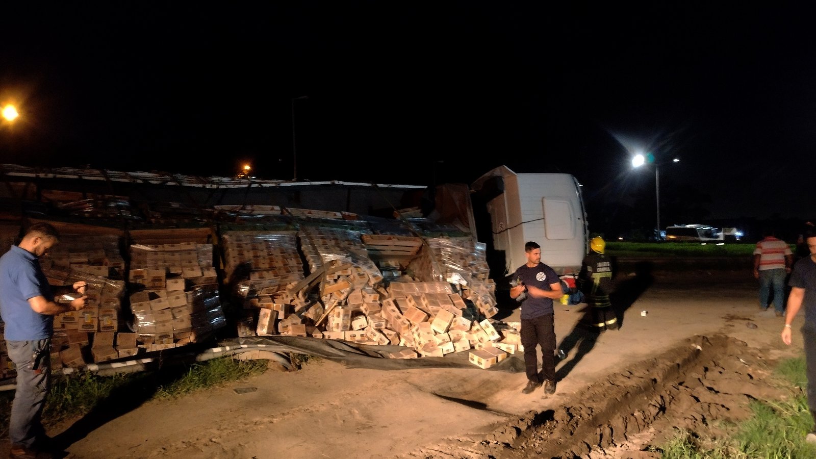 El hecho ocurrió frente al barrio San Felipe en el retome desde ruta 6 hacía la Panamericana. El camionero fue asistido y traslado al nosocomio local por personal del SAME. Vecinos se acercaron y comenzaron a llevarse la mercadería, mientras el personal policial intentaba contener la situación pero fueron superados en números.