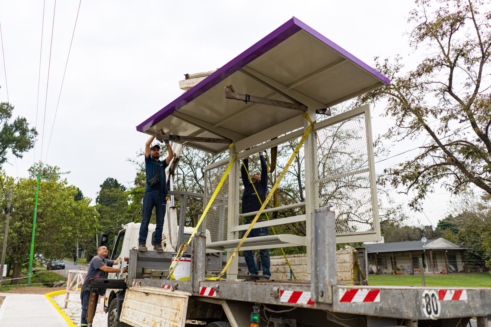 Las estructuras fueron colocadas en las dársenas recientemente construidas sobre colectora norte y la calle Jacinto Fernández y brindarán a los vecinos que esperan el arribo de los colectivos un espacio más cómodo y seguro.