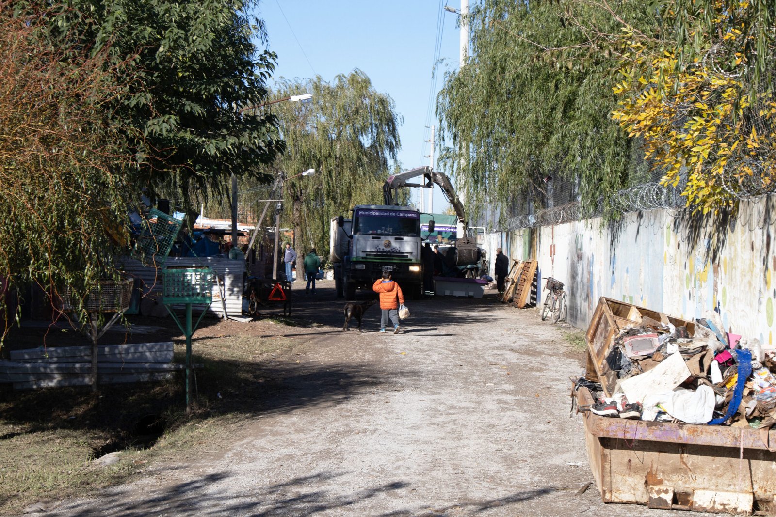 Si bien los daños en dicho barrio fueron menores a otros sectores de la ciudad, distintas cuadrillas municipales están presentes recolectando y realizando tareas de saneamiento.