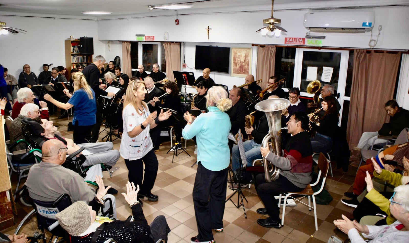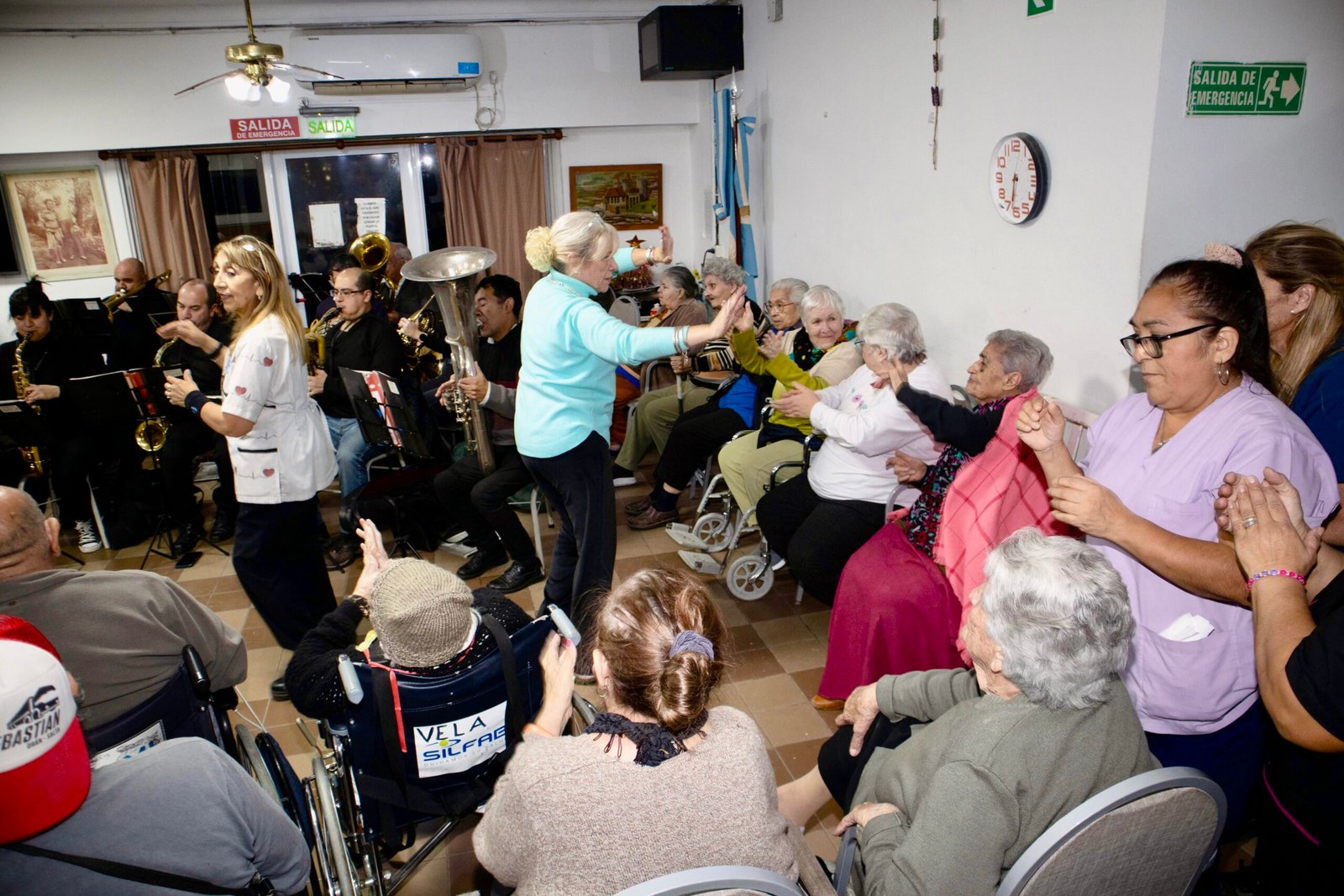 En el marco de sus habituales ensayos, la Banda Municipal ofreció un cálido show a los adultos mayores que residen en el hogar, incluyendo tanto piezas clásicas como de otros géneros musicales.
