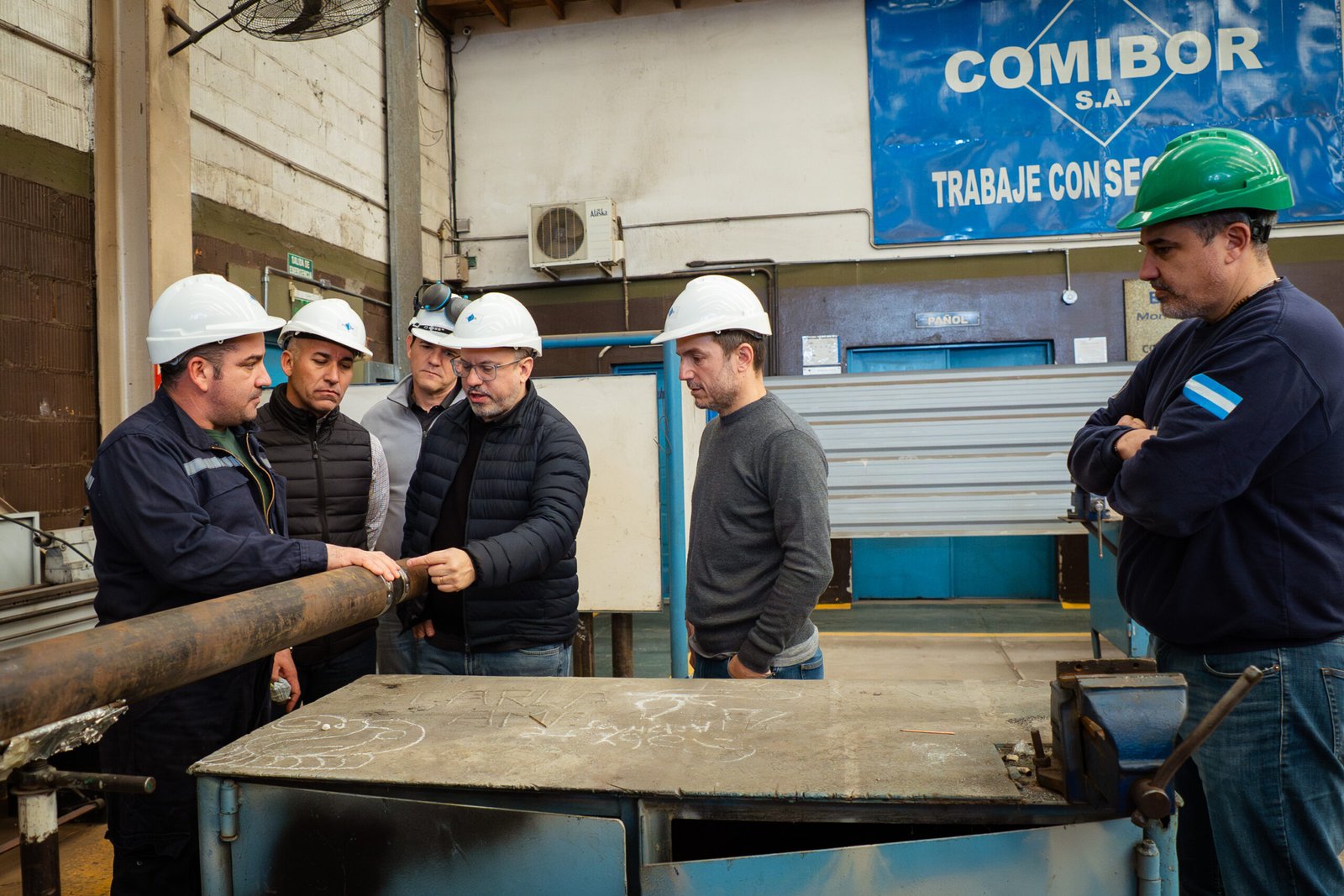 Allí fueron recibidos por el responsable de la empresa, Cristian Comi, quien les comentó los trabajos de servicios, montajes y fabricaciones industriales que realiza COMIBOR y les mostró la obra de expansión que están llevando adelante.