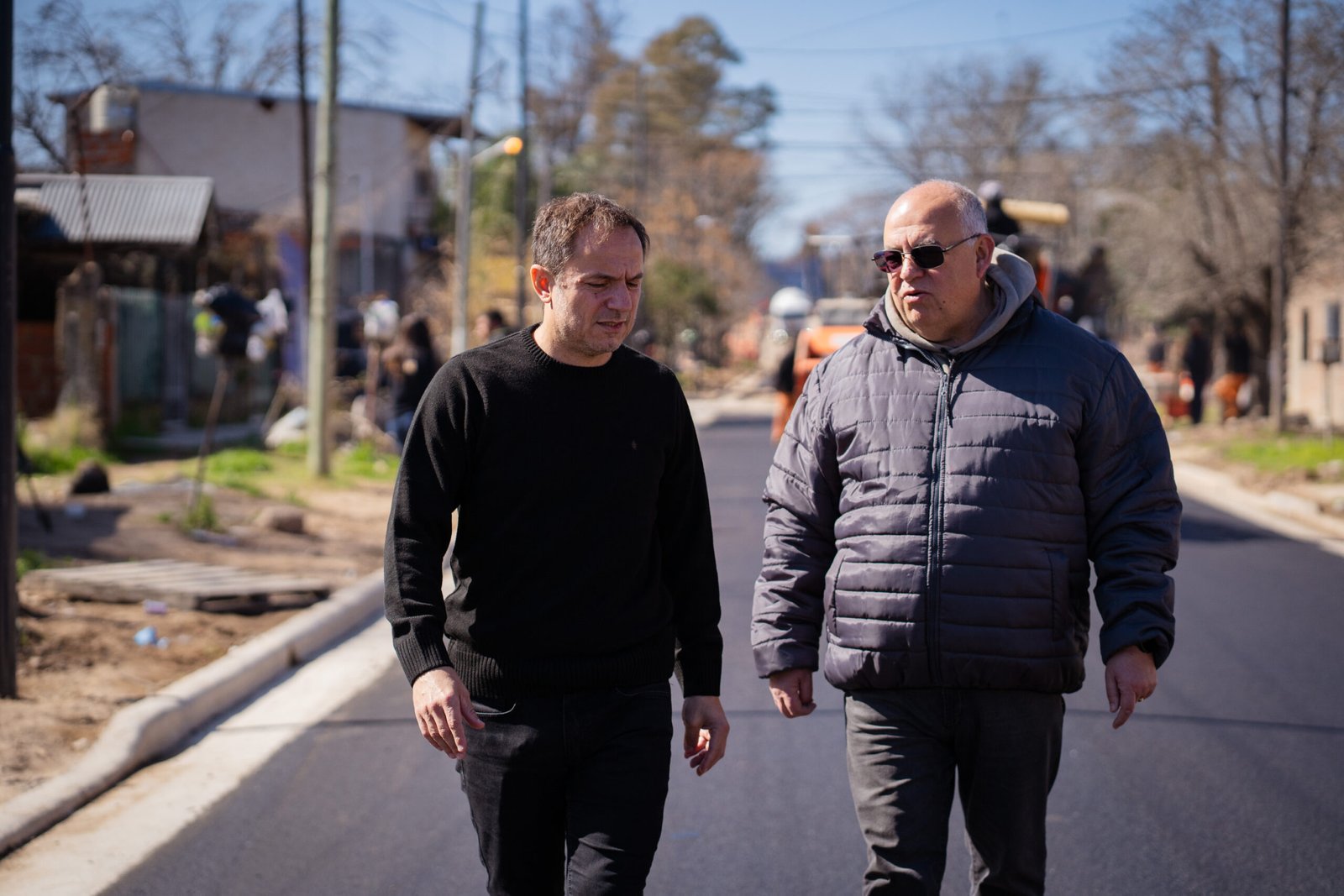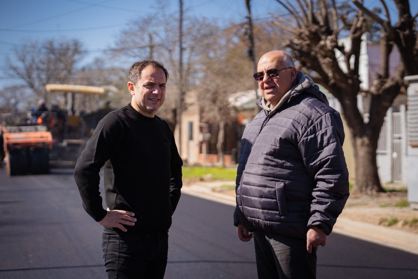 Acompañado por el candidato a concejal Nerio Nogueira, el jefe comunal recorrió la calle Laprida, que ya presenta un importante avance de la nueva carpeta asfáltica que se está ejecutando entre Schweitzer y Balcarce.