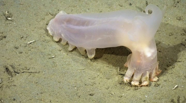 Un asombroso pulpo telescopio (Amphitretus sp.) documentado a 888 metros de profundidad en el cañón de Mar del Plata. Créditos: ROV SuBastian / Schmidt Ocean Institute.