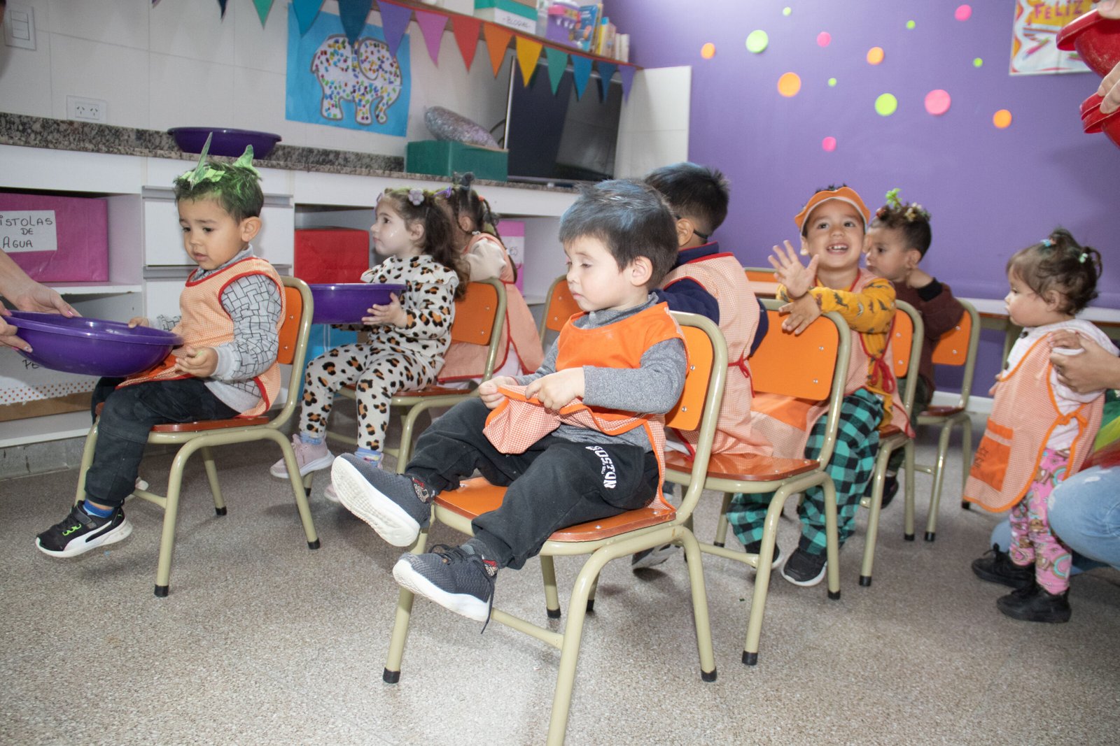 Los pequeños compartieron una jornada con sorpresas y juegos especiales. Como obsequio, recibieron un juguete confeccionado por las propias seños con material reciclado.