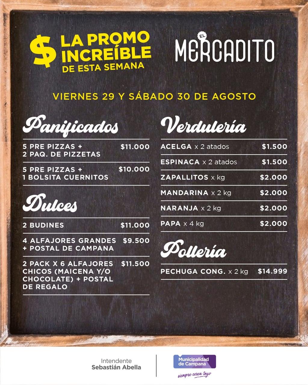 – 5 Pre pizzas y 2 paquetes de pizzetas: $11.000