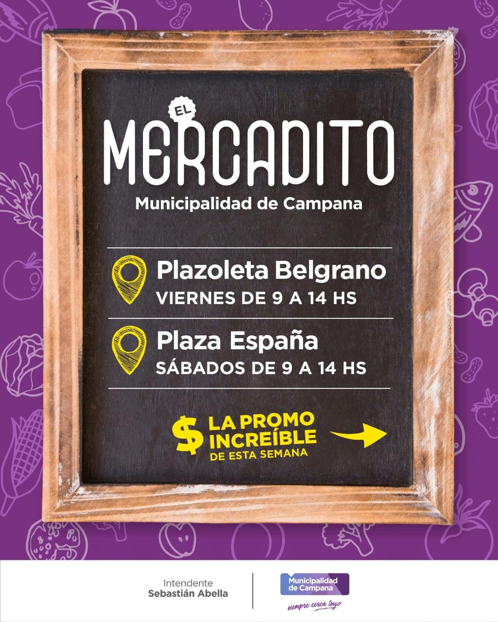 La Secretaría de Desarrollo Económico del Municipio informa que este viernes 29 en la Plazoleta Belgrano y sábado 30 de agosto en la Plaza España regresará el Mercadito con nuevas ofertas en distintos rubros. Ambas jornadas se extenderán de 9 a 14 horas.