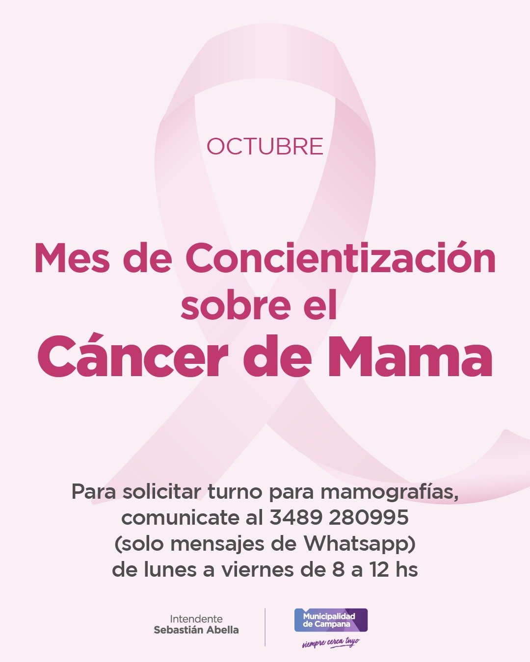 La iniciativa se realiza en el marco del Mes de Concientización para la Prevención del Cáncer de Mama y está destinada a mujeres mayores de 40 años. Para solicitar un turno, se debe enviar un mensaje por WhatsApp al 3489-280995, de lunes a viernes de 8 a 12. No requiere orden médica. En el marco […]
