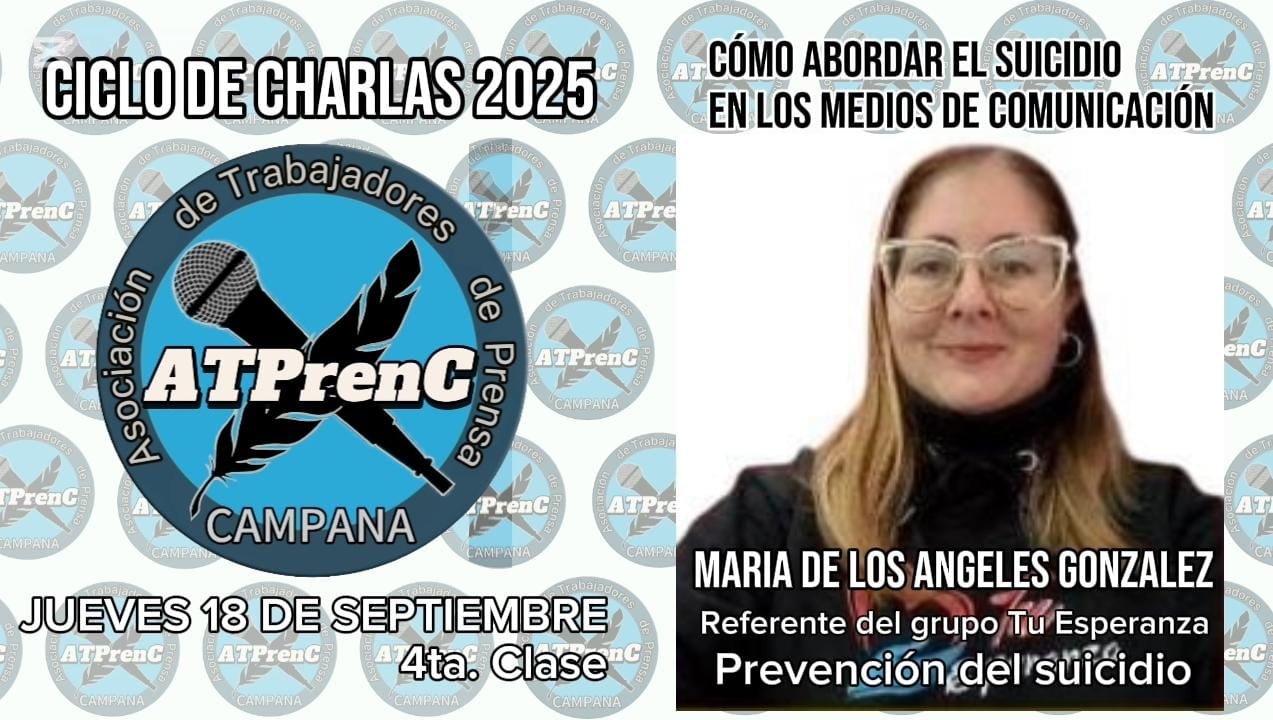 La Asociación de Trabajadores de Prensa (ATPRENC) invita una vez más a la comunidad a participar de la cuarta clase de su ciclo de charlas 2025, que se realizará el jueves 18 de septiembre a las 18 horas en la Biblioteca Jean Jaurès. En esta oportunidad, la jornada abordará una temática de gran sensibilidad y relevancia social: la prevención del suicidio y su tratamiento en los medios de comunicación.