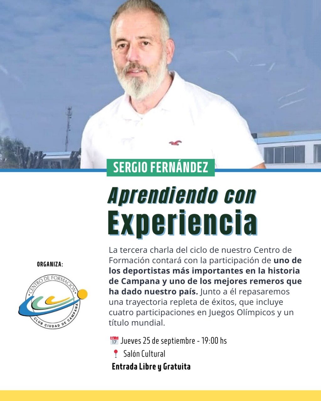 A través de su Centro de Formación, el Club Ciudad de Campana está llevando adelante el ciclo “Aprendiendo con Experiencia”, un espacio de reflexión sobre el deporte, los clubes, la formación y el alto rendimiento que se nutre del testimonio y la historia de destacados deportistas y entrenadores.