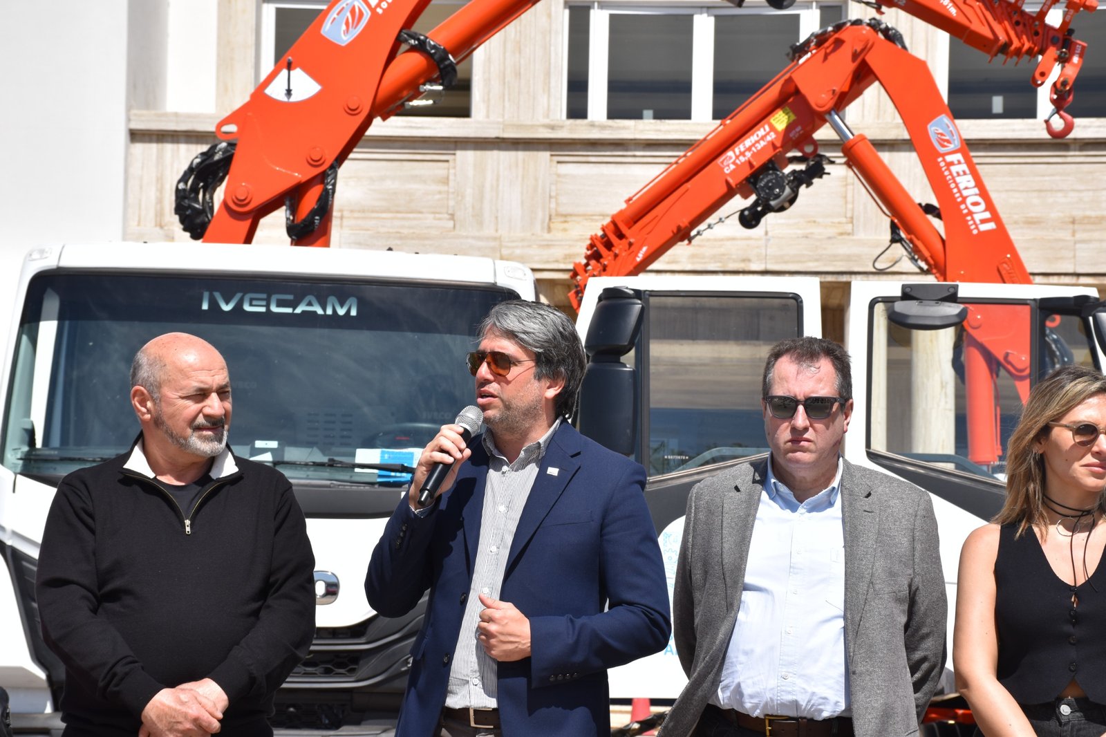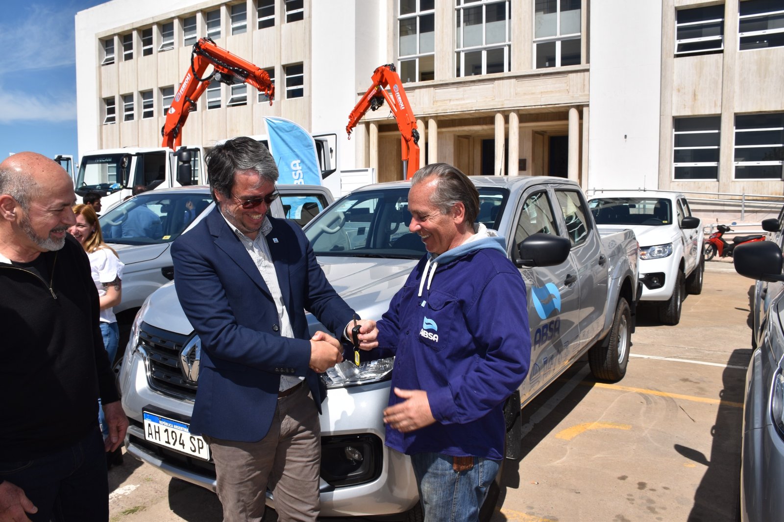 El presidente de ABSA, Hugo Obed, junto al intendente de Ensenada, Mario Secco, y al Secretario Adjunto del SOSBA, Claudio Crissio presentaron nuevos vehículos que serán incorporados a la flota de ABSA.
