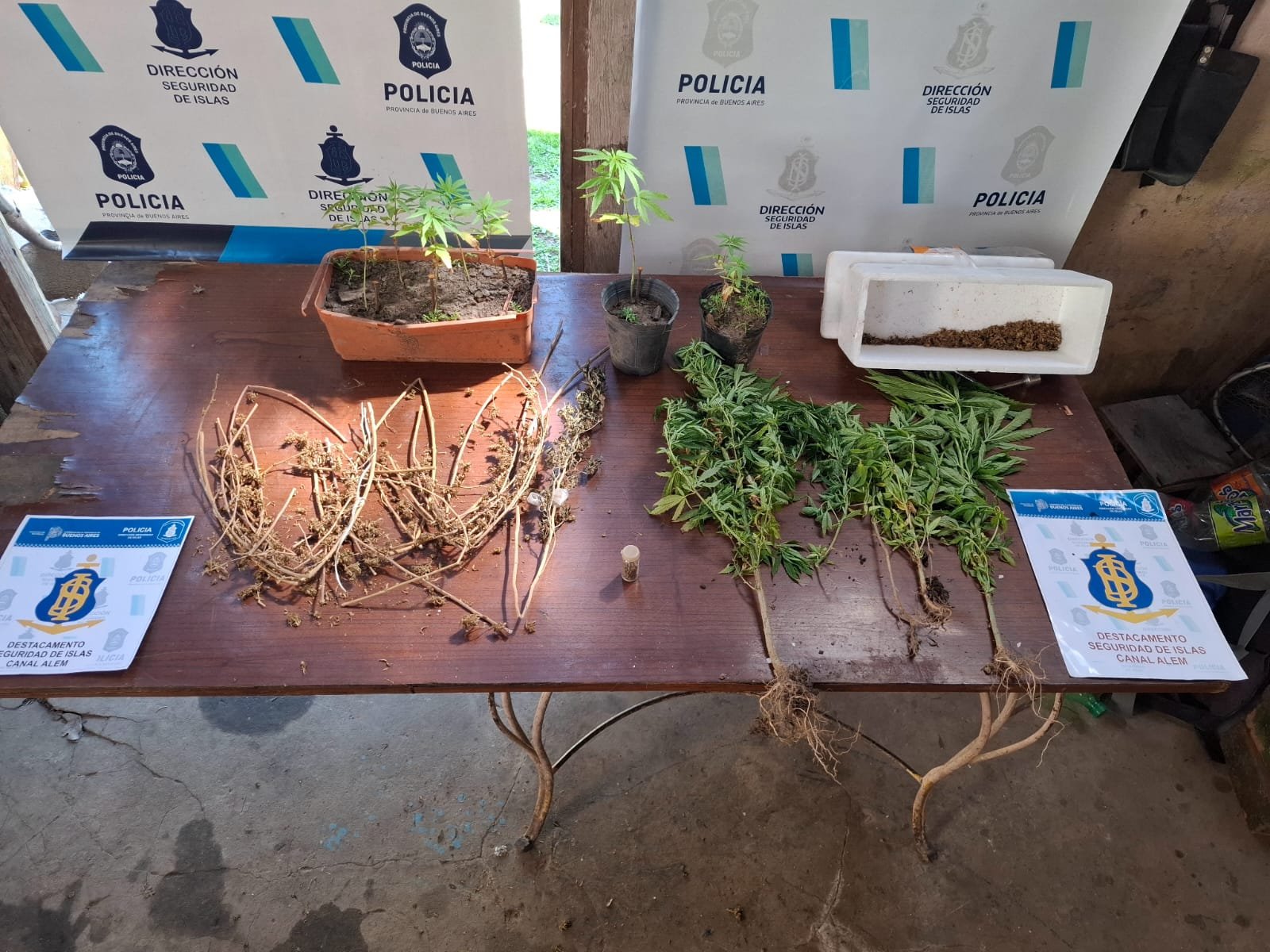 Una investigación de efectivos del Destacamento del Canal Alem derivó en allanamientos que posibilitaron la detención de los autores del robo, el secuestro de armas y marihuana y la recuperación de un freezer, una heladera y otros electrodomésticos que ya fueron restituidos al establecimiento escolar.