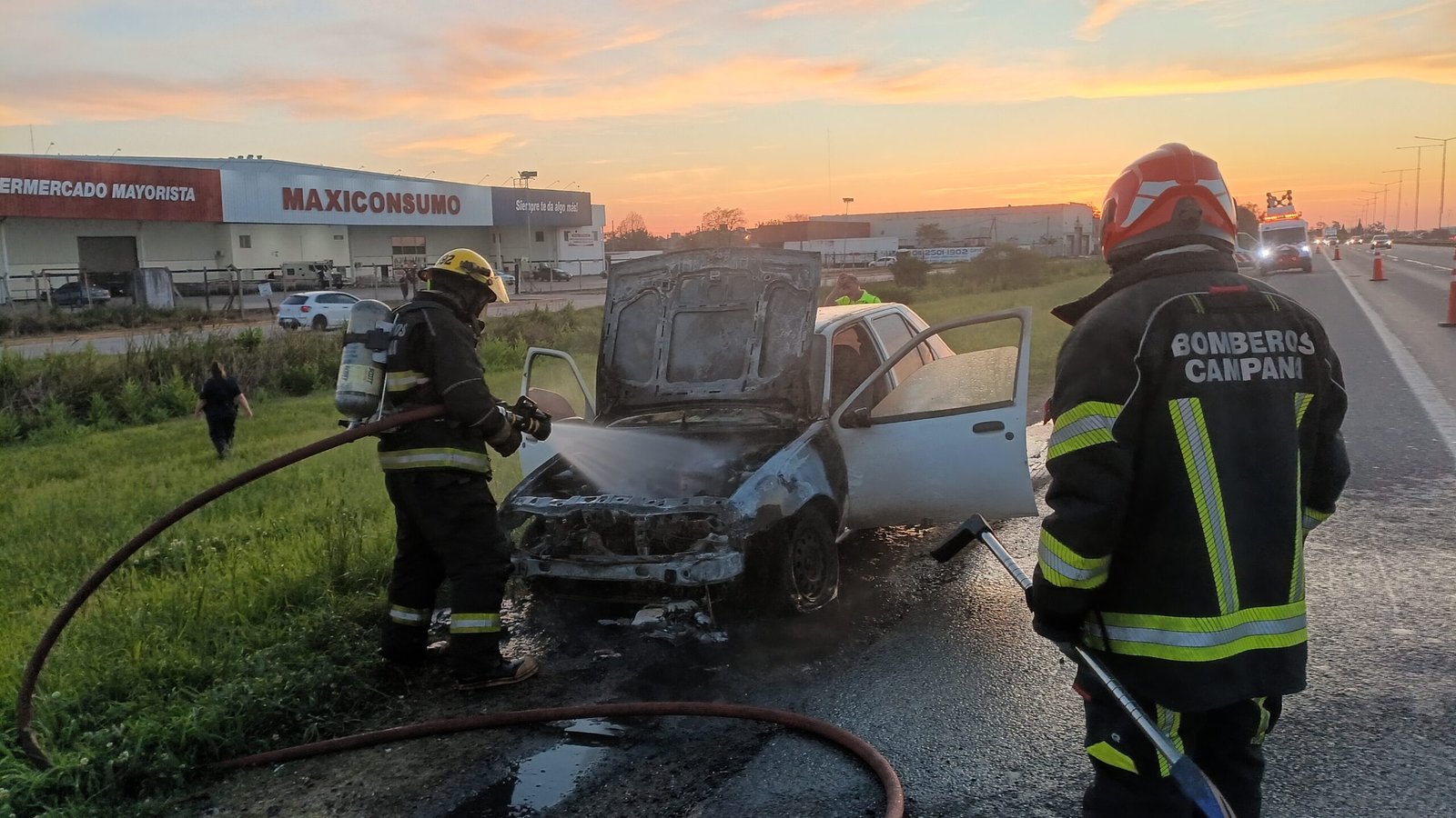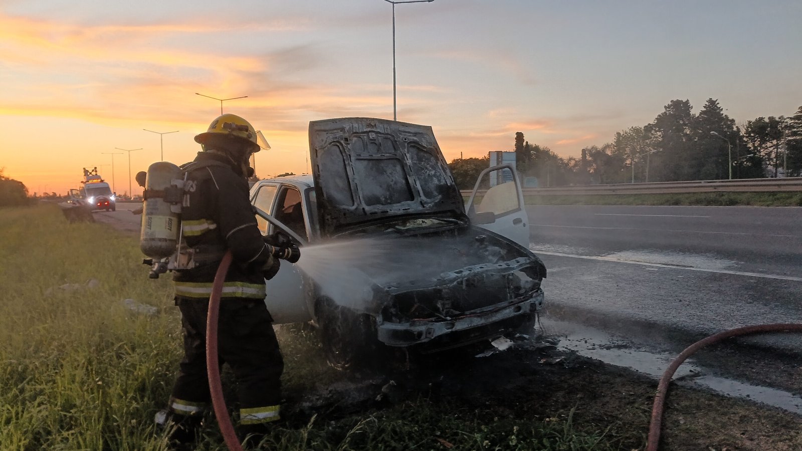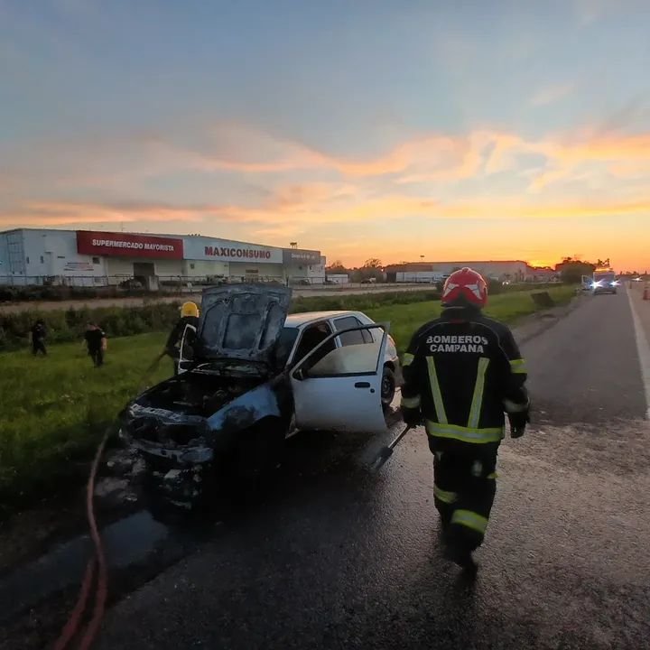 Un incendio causó graves consecuencias en un automóvil Ford Fiesta que sufrió un siniestro cuando circulaba por ruta Panamericana sentido a Capital a la altura del kilómetro 74,5 frente al barrio Dallera.