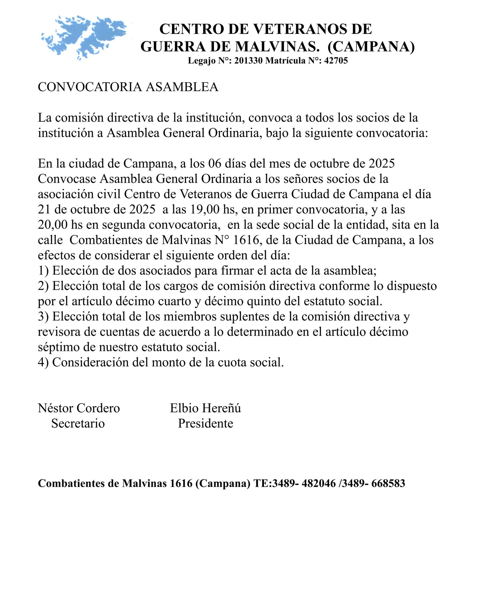 Centro de veteranos de guerra de Malvinas (Campana): Convocatoria a Asamblea General Ordinaria a. ultimas noticias Convocatoria/edictos 6 de octubre de 202515 de octubre de 2025mariano