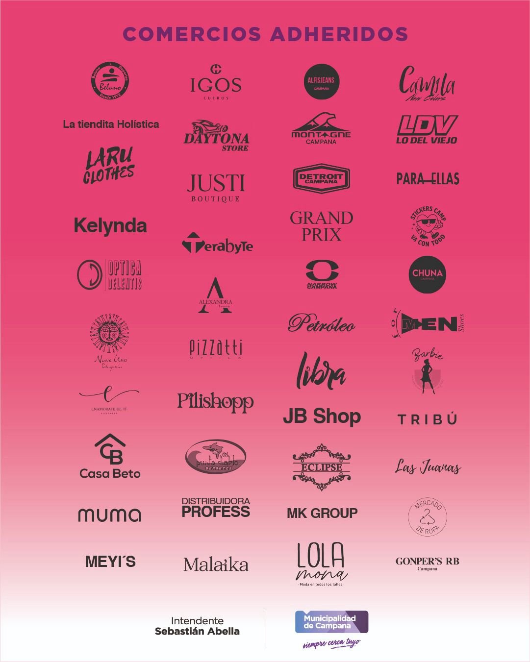 En esta oportunidad, participan: Beluno Deportes; La Tiendita Holística; Laru Clothes; Kelynda; Chuna; Mercado de Ropa; Para Ellas; Gonper’s RB; Óptica Delentis; Nave Uno; Enamorate de Ti; Stickers Camp; LDV Shop; Be Malaika; Casa Beto; Igos; Daytona Store; Justi Boutique; Terabyte Computación; Alexandra Lenceria; Óptica Pizzatti; Pilishopp; Punta del Diablo Deportes; Las Juanas; Tribu; For Men; Muma; Distri Profess; Viviana (Barbie indumentaria y calzado); Alfisjeans Campana; Montagne; Detroit; Grand Prix; Narrow; Petróleo, Libra, JB Shop, Eclipse Boutique, Camila, MK Group, Lola Mona y Meyi´s