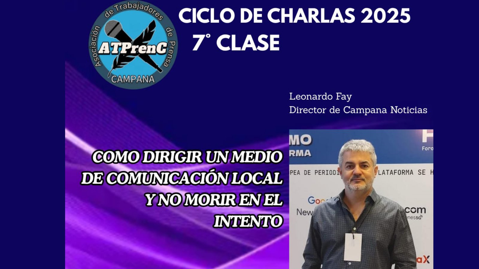En esta oportunidad, el encuentro estará a cargo de Leonardo Fay, director de Campana Noticias, quien brindará la charla titulada “Cómo tener un medio de comunicación local y sobrevivir”. Con más de 16 años de trayectoria al frente del primer portal digital de noticias de la ciudad, Fay compartirá su experiencia, sostenibilidad y adaptación de los medios locales en un contexto de transformación tecnológica y cambios en los hábitos de consumo informativo.
