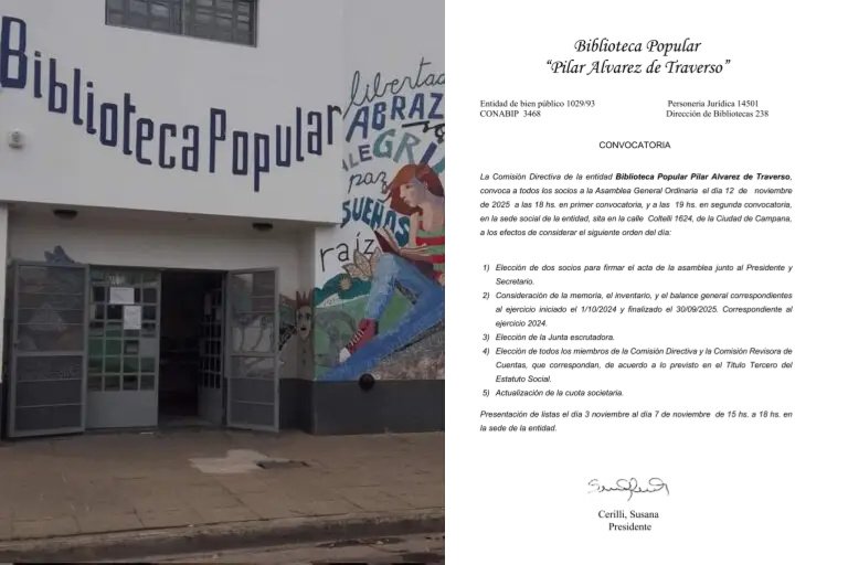 • Biblioteca Popular “Pilar Alvarez De Traverso”: Convocatoria A Asamblea General Ordinaria De Socios
