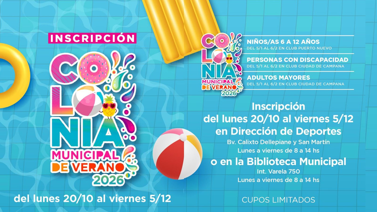 El verano es sinónimo de Colonia Municipal y la Secretaría de Inclusión, Educación y Cultura ya se prepara para desarrollar la edición 2026. Y el primer paso, es la apertura del proceso de inscripción que dará inicio este lunes 20 de octubre.