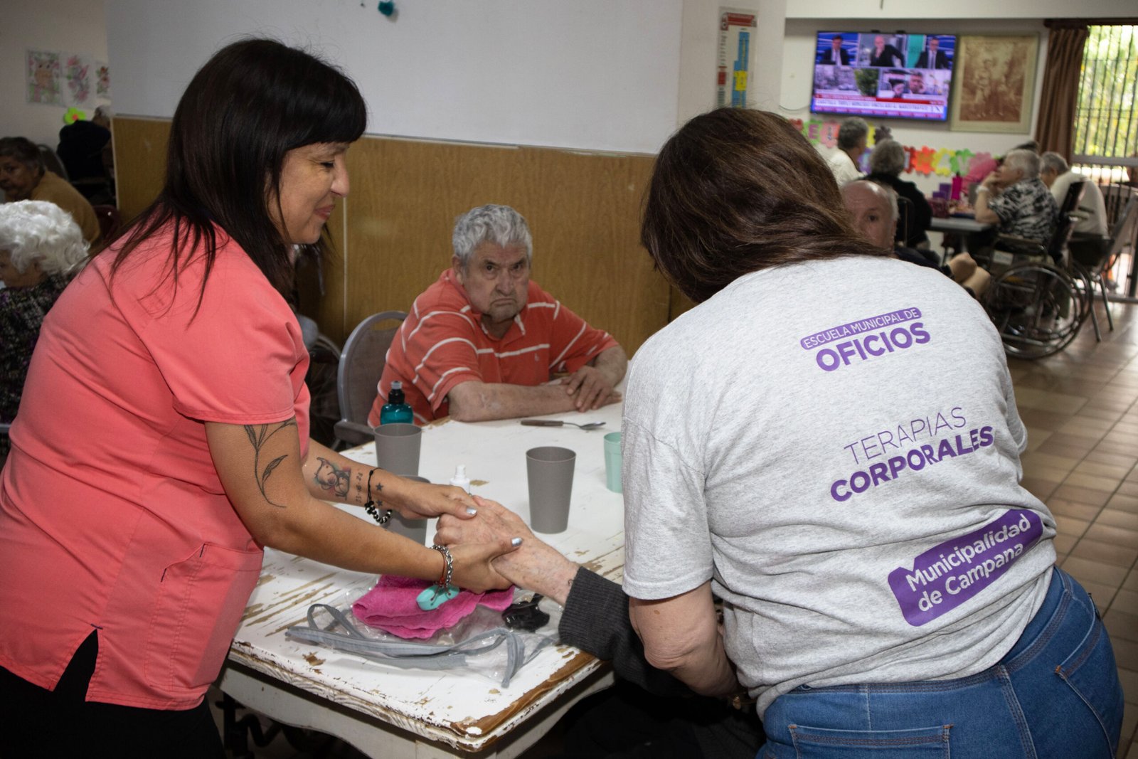 Los alumnos del Taller de Terapias Corporales y Estética Modeladora del Centro Municipal de Oficios (CMO) visitaron el Hogar Municipal de Ancianos, donde pudieron compartir una jornada especial brindando sus servicios a los residentes.