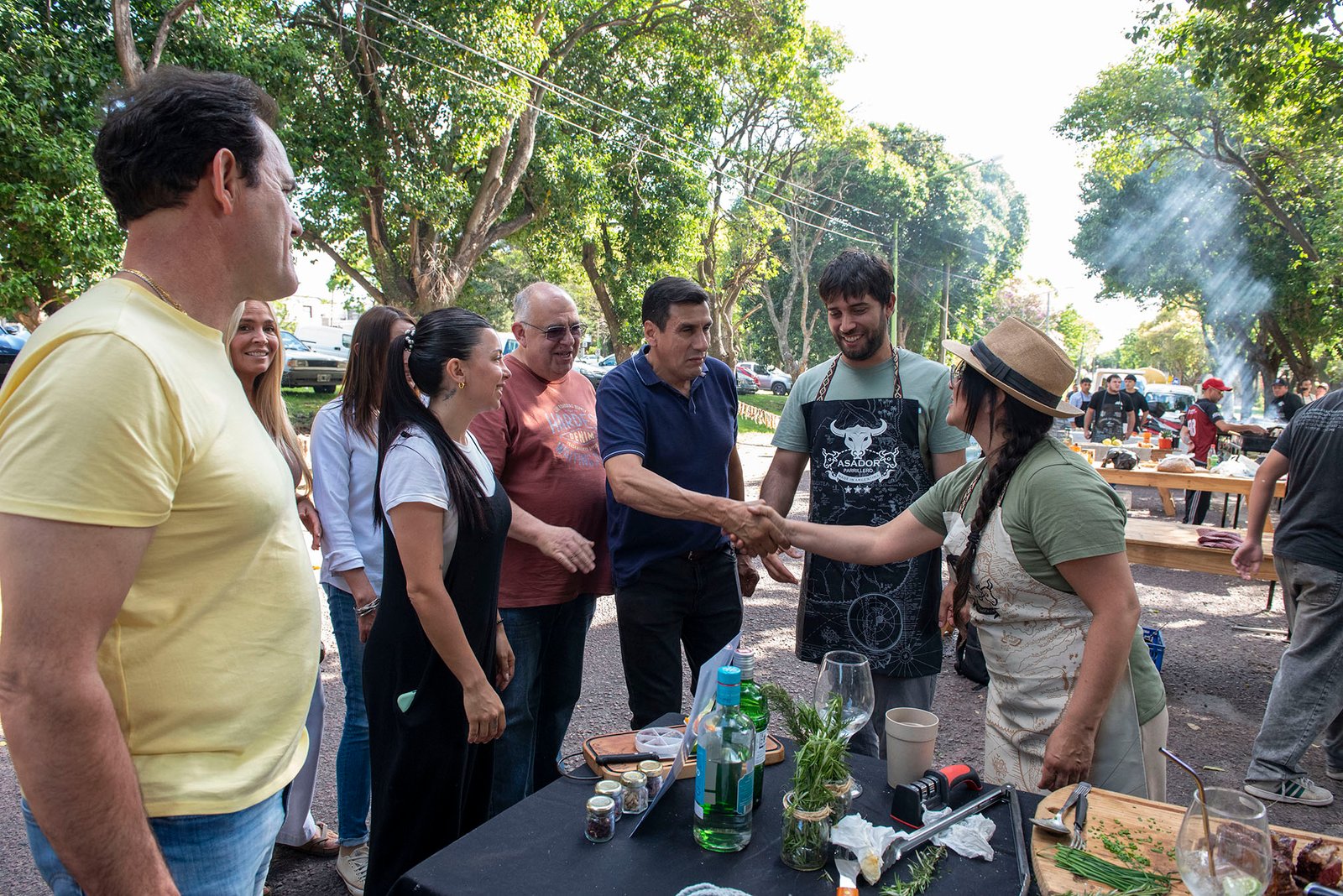 En su recorrida por el lugar, estuvieron en la competencia de asadores, donde más de 30 equipos demostraron su talento a la parrilla, presentando sus mejores platos ante un exigente jurado. Allí, conversaron con los participantes y se interiorizaron en sus experiencias y secretos culinarios.