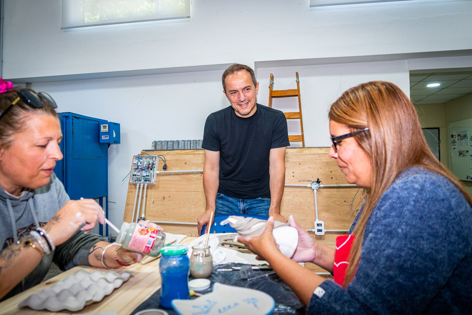 Los días lunes, la sede de la calle Carhué del Centro Municipal de Oficios (CMO) comienza sus actividades con el dictado del curso de cerámica a cargo de la profesora Cynthia Lares. Y, esta semana, recibió la visita del intendente Sebastián Abella quien se acercó para conocer de cerca el espacio y el proceso de aprendizaje.