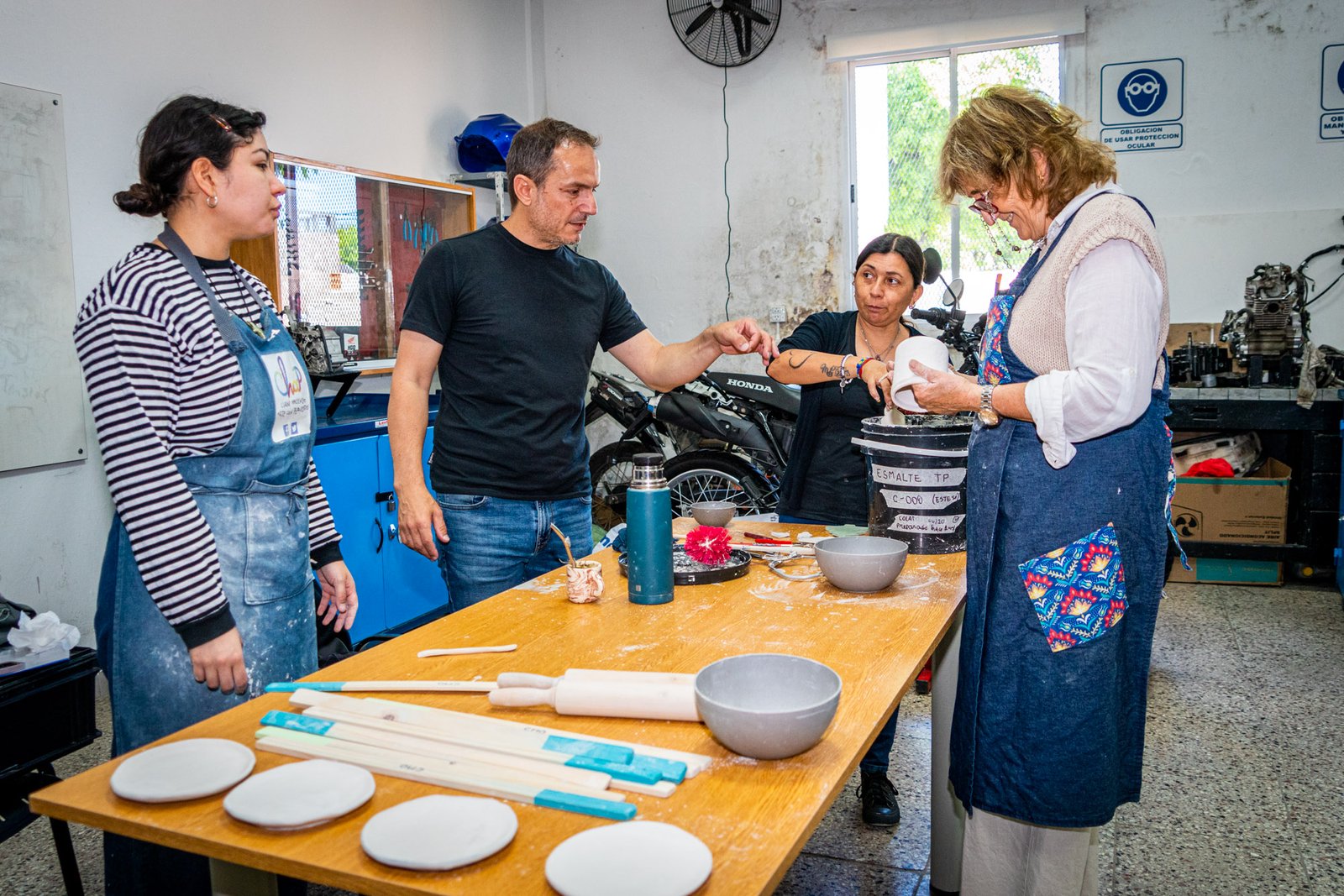Este lunes, el intendente Abella compartió una de las clases con las alumnas y conoció el proceso de aprendizaje que llevan a cabo para crear distintas piezas.