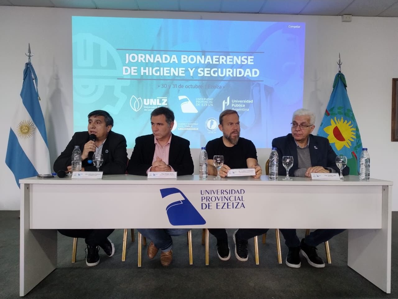 Las actividades comenzaron el jueves 30 de octubre en el campus de la Facultad de Ingeniería de la UNLZ, donde se realizó el acto de apertura con la presencia del Ing. Diego Serra, decano de la Facultad de Ingeniería, el Mg. Daniel Galli, rector de la UPE, y el Lic. Lorenzo Gómez, presidente del Colegio de Profesionales de la Higiene y Seguridad.