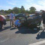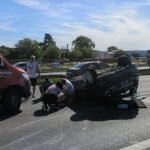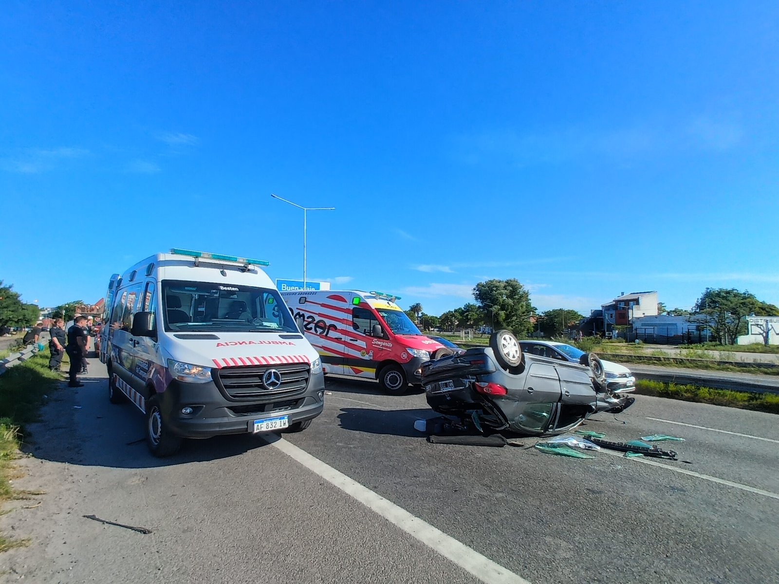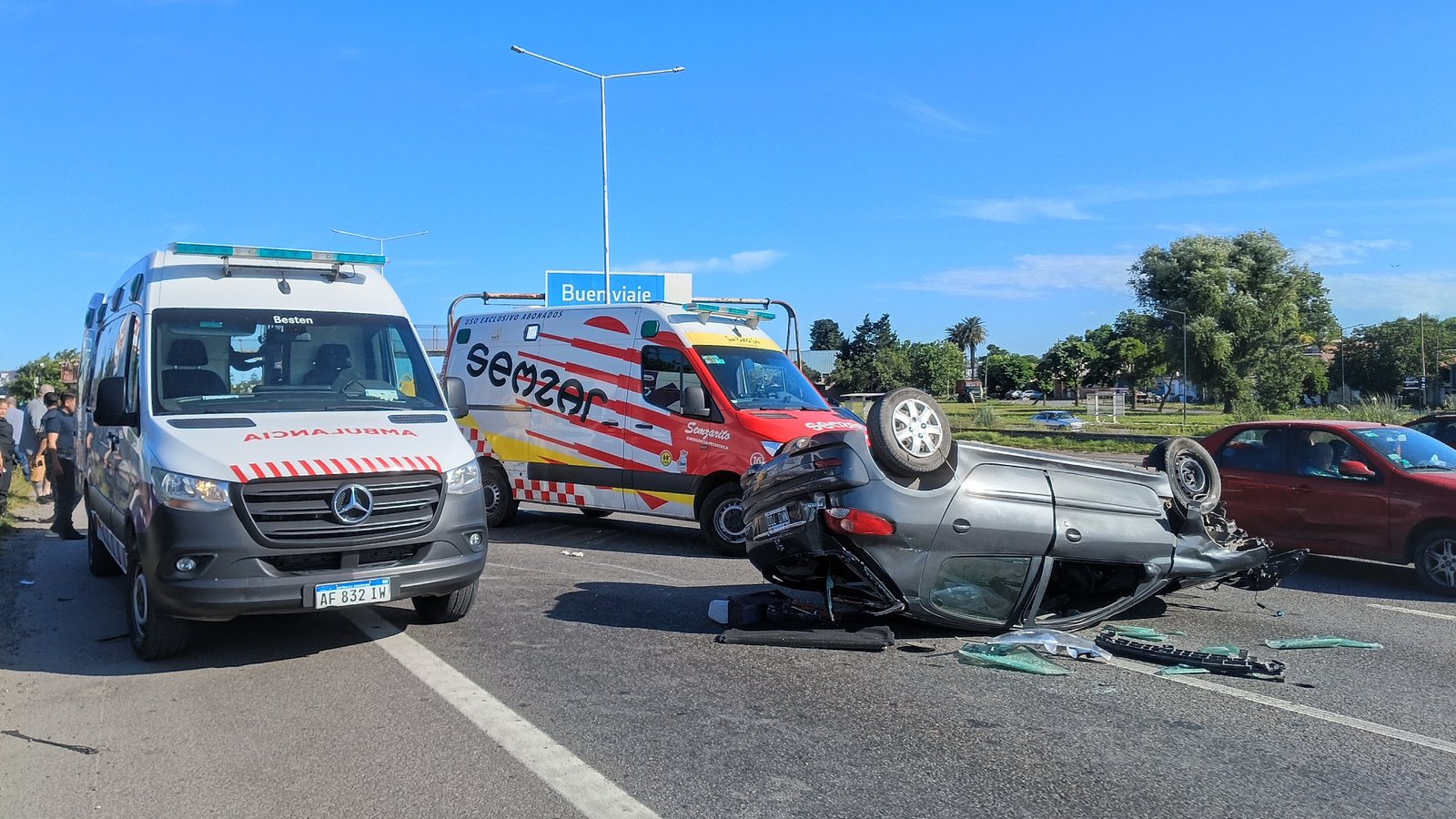 Ocurrió sentido a Rosario a metros de la pasarela del barrio Del Pino. El conductor en automóvil Peugeot 207 perdió el control, golpeó el guardrail y terminó volcando sobre el carril central de la autopista, sufriendo heridas y siendo trasladado al hospital San José por una ambulancia del SAME.