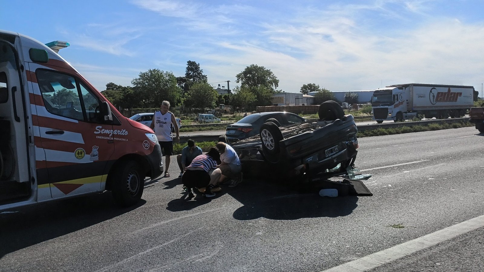 Ocurrió sentido a Rosario a metros de la pasarela del barrio Del Pino. El conductor en automóvil Peugeot 207 perdió el control, golpeó el guardrail y terminó volcando sobre el carril central de la autopista, sufriendo heridas y siendo trasladado al hospital San José por una ambulancia del SAME.