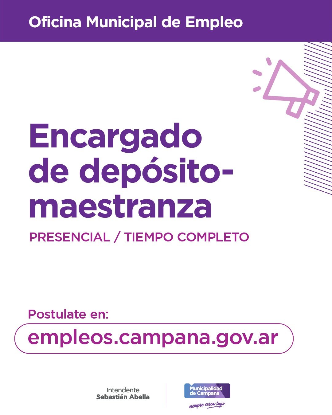 Las personas interesadas deberán postularse a través del siguiente enlace: https://empleos.campana.gov.ar/jobs/135