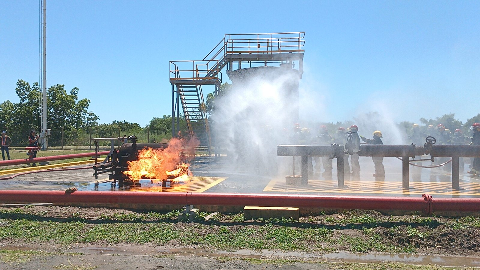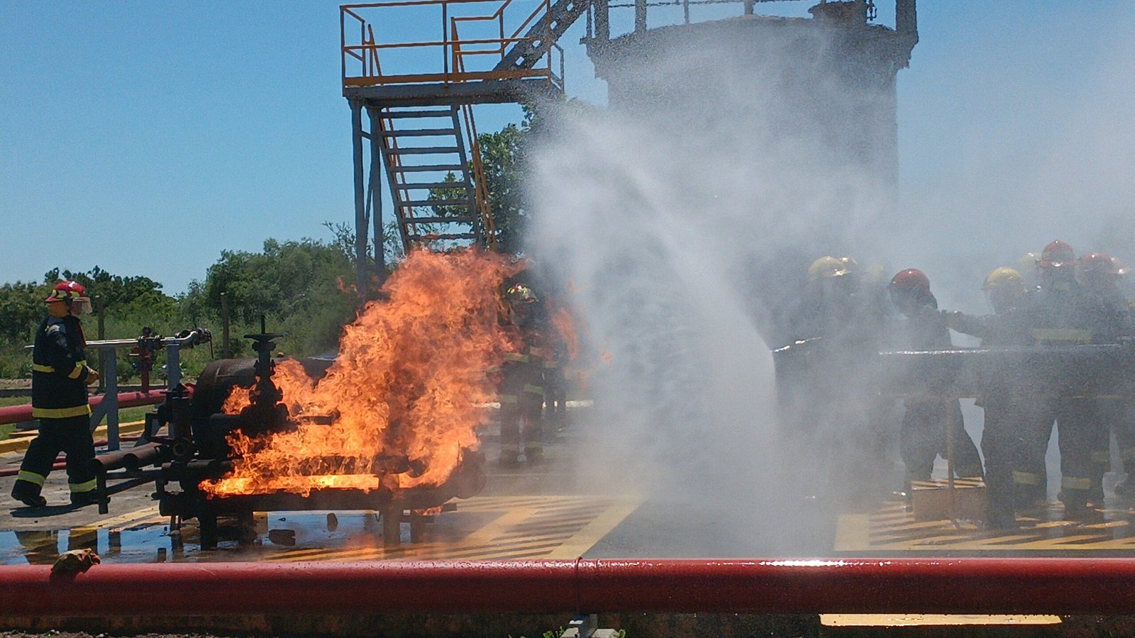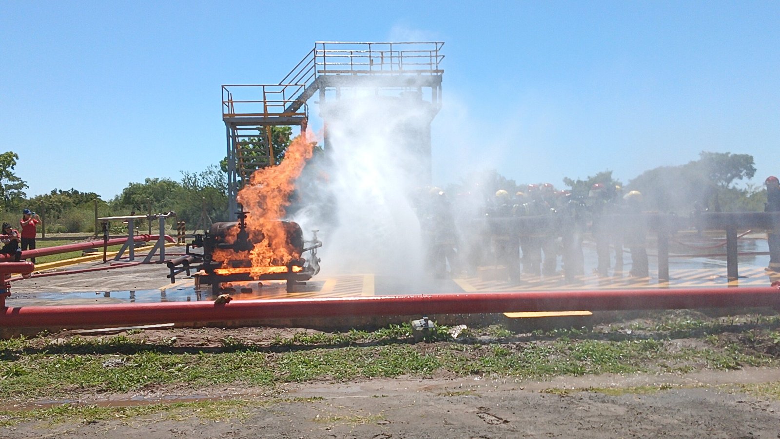 El campo de entrenamiento de Bayer Zárate es reconocido por su infraestructura y equipamiento, con seis simuladores de fuego y un simulador de espacio confinado, que permiten recrear condiciones reales de emergencia.