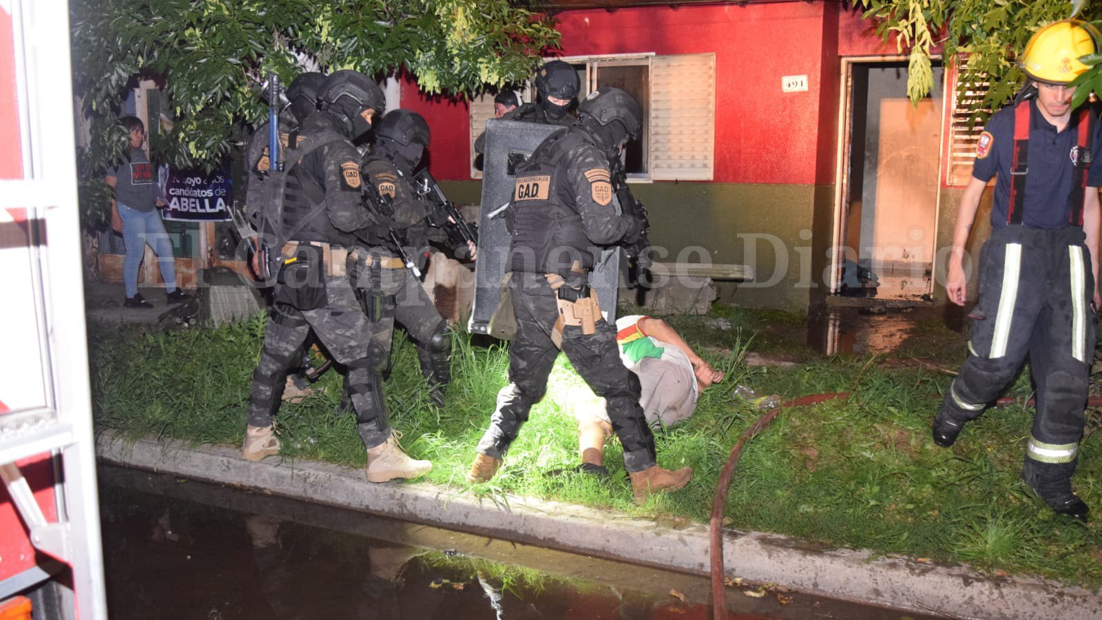 Mientras encontraban trabajando en el lugar, personal del GAD irrumpió en el domicilio y detuvo a un hombre que moraria en esa casa y que se encontraba junto a los bomberos en ese momento.
