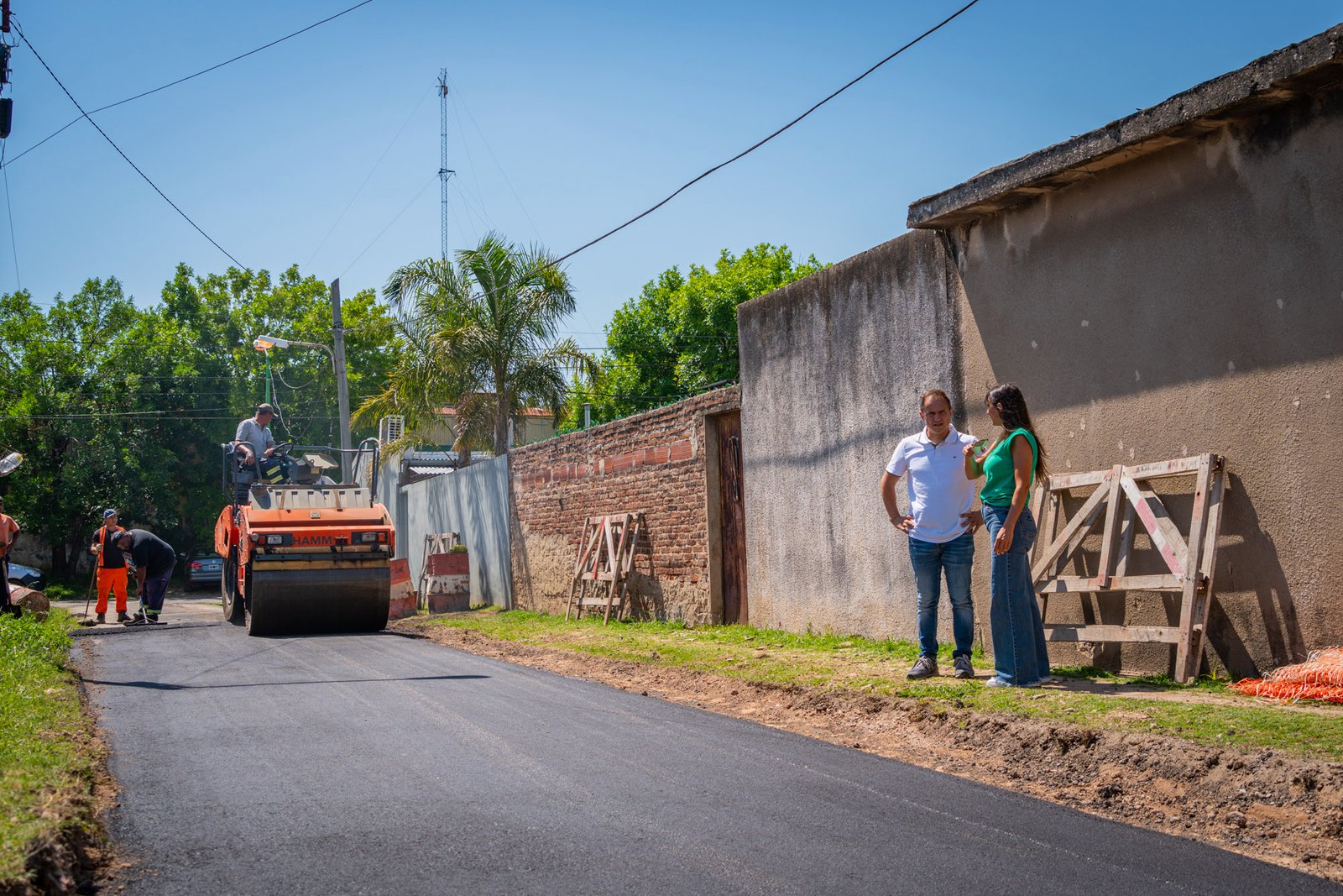 El Municipio sigue transformando Villanueva y el intendente Sebastián Abella estuvo este viernes en el Pasaje French, por donde avanza la obra de asfalto que alcanza a 10 nuevas cuadras del barrio.