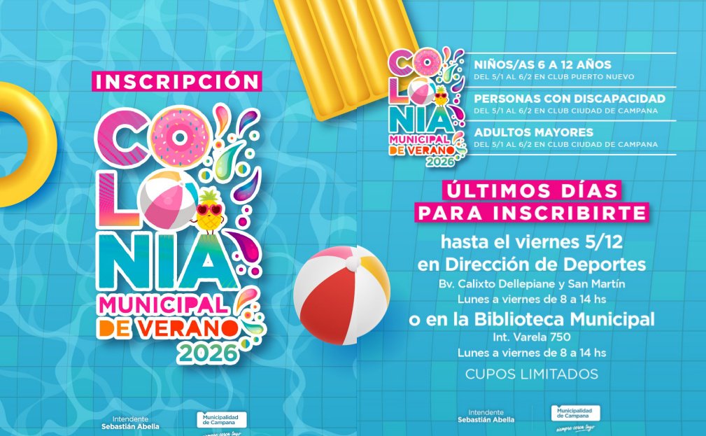 Como ya es tradición, la propuesta está destinada a adultos mayores, personas con discapacidad y chicos de entre 6 y 12 años. Los dos primeros grupos disfrutarán de las actividades en el Club Ciudad de Campana; mientras que, el tercer grupo, concurrirá al Club Puerto Nuevo. Ambas sedes se desarrollarán en el turno mañana desde el 5 de enero al 6 de febrero.