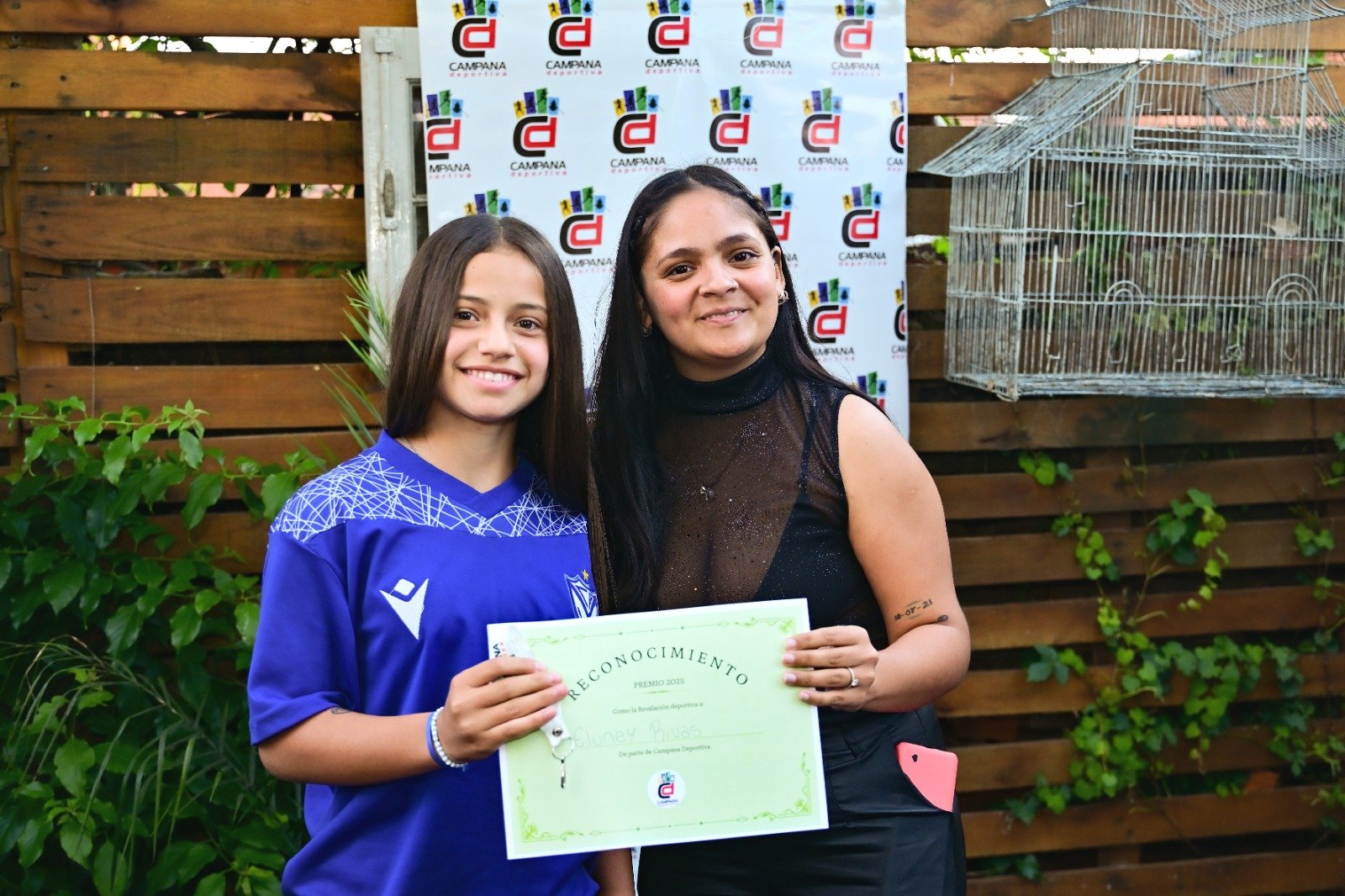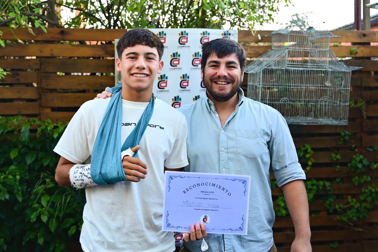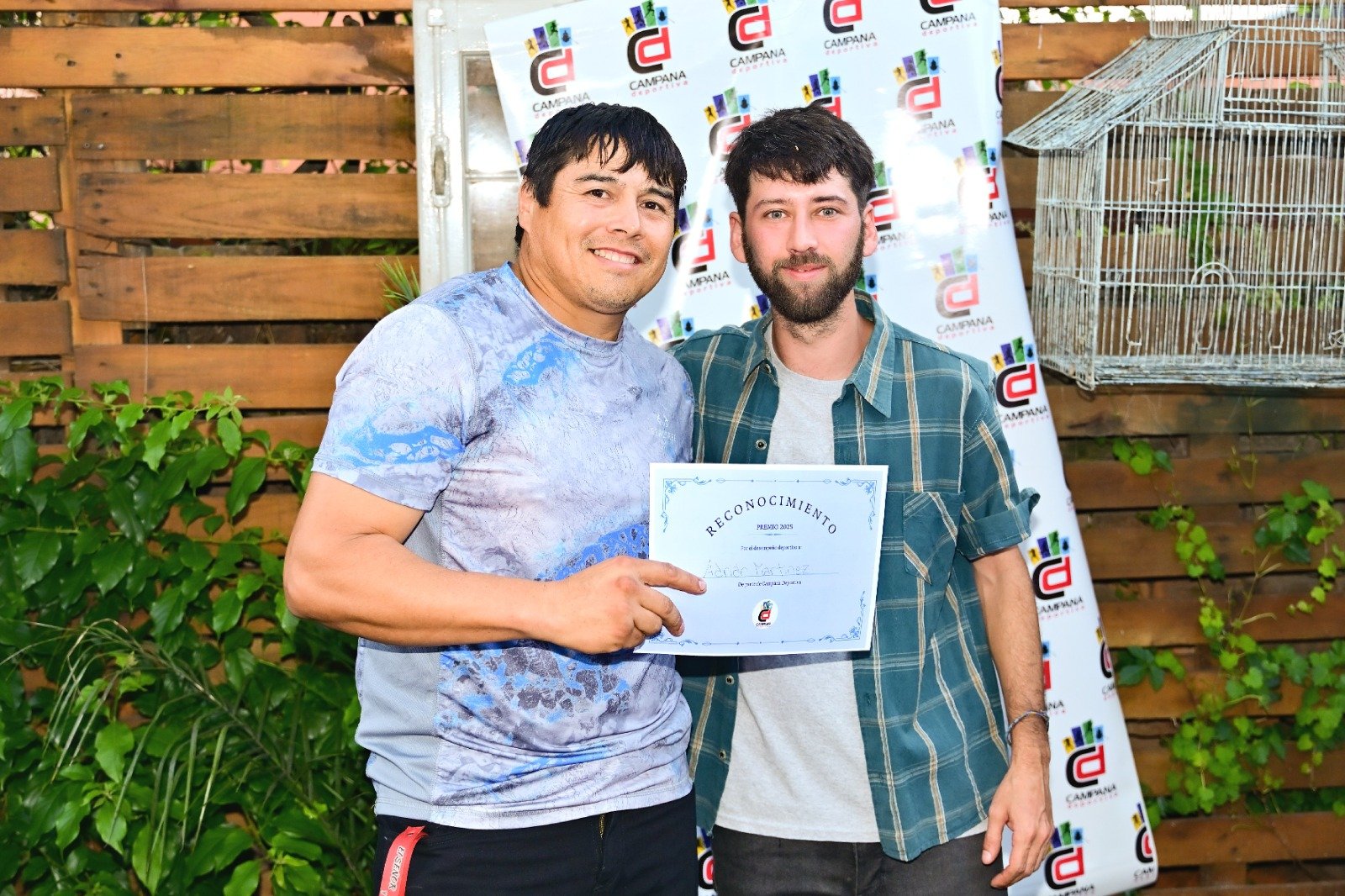 La ceremonia también reservó dos momentos emotivos: el Reconocimiento Especial para Enzo Velázquez, recordado compañero del medio, y para Sandro Fiore, por su apoyo y generosidad con Campana Deportiva.