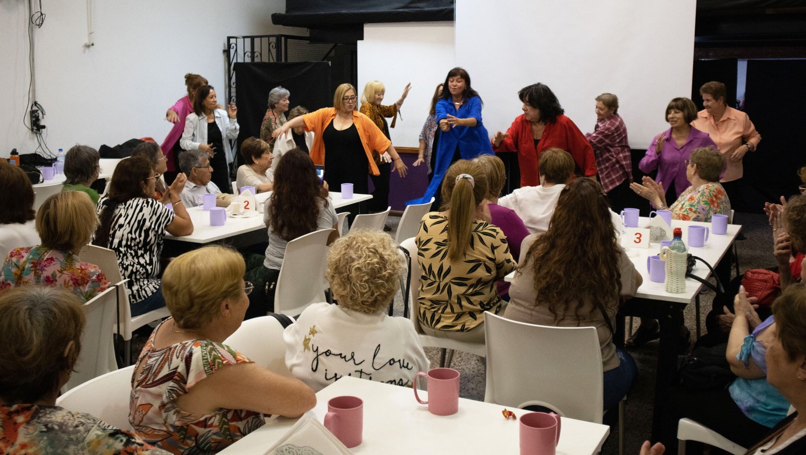 La jornada comenzó con una presentación a cargo de Marcela Salcedo y su grupo de expresión corporal, quienes ofrecieron una intervención artística pensada para estimular el movimiento.