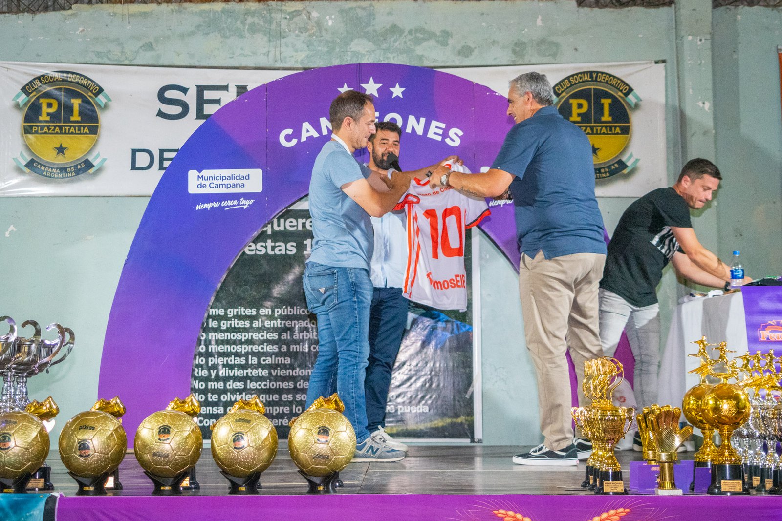 En una nueva jornada acompañando al deporte campanense, el intendente Sebastián Abella participó este miércoles de la ceremonia de premiación del Torneo Intercolegial de Baby Fútbol del Club Plaza Italia.