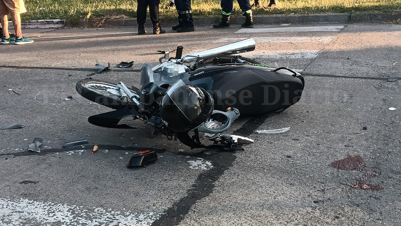 El siniestro vial involucró a una moto Corven 110 y un automóvil Volkswagen Gol y según atestiguaron en el lugar, la moto circulaba a gran velocidad en dirección a Colectora Norte cuando llegar al cruce con Saavedra se ven sorprendidos por el automóvil Volkswagen que al intentar doblar en dirección a calle Matheu termina siendo un impactado en el costado izquierdo.