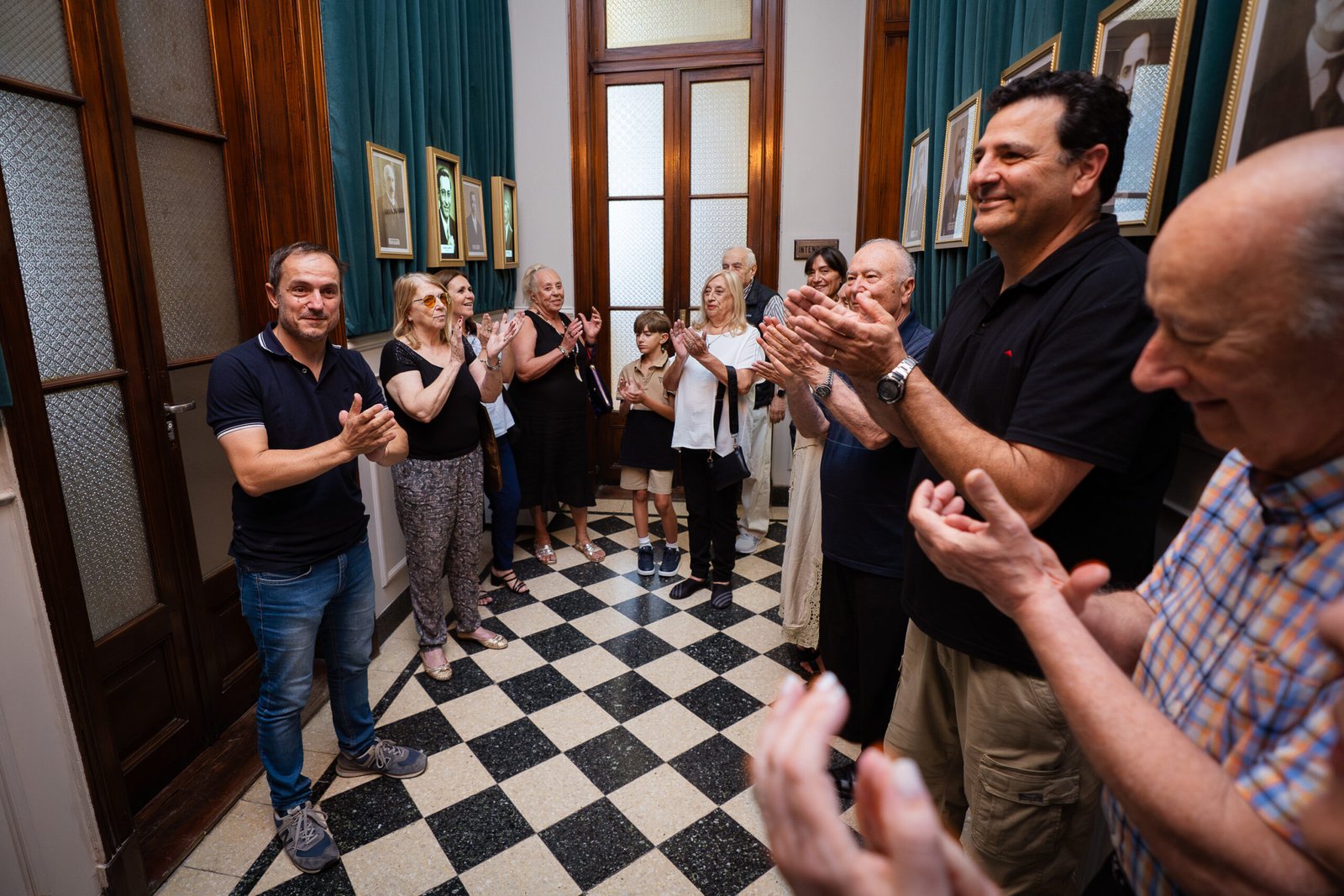 Así, con la utilización de nuevas tecnologías como la Inteligencia Artificial (IA), el pasillo que conducía al antiguo despacho del jefe comunal sigue contando con las imágenes de todos los intendentes electos de la ciudad, pero ahora, ocho de ellos dialogan entre sí, repasando los hechos más importantes que vivió Campana, como así también curiosidades que hacen a su historia.
