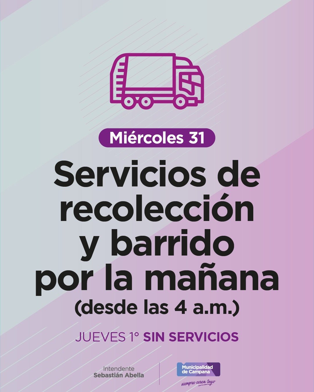 Se solicita a los vecinos respetar las modificaciones en el cronograma y no sacar la basura de sus hogares para evitar que se acumulen en la vía pública.