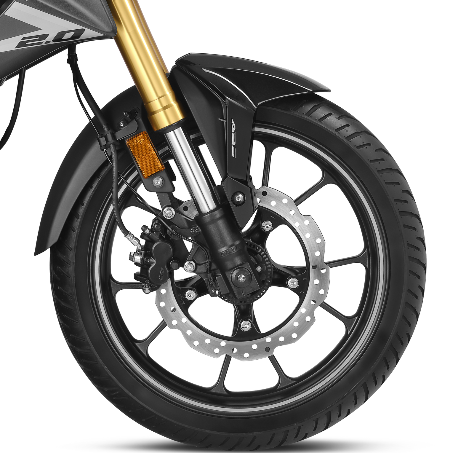 Comparte la misma base mecánica que la CB190R 2.0, con motor de 184 cc, ABS de doble canal, frenos a disco delantero y trasero y horquilla invertida Showa, logrando un equilibrio ideal entre robustez, maniobrabilidad y confianza al conducir.