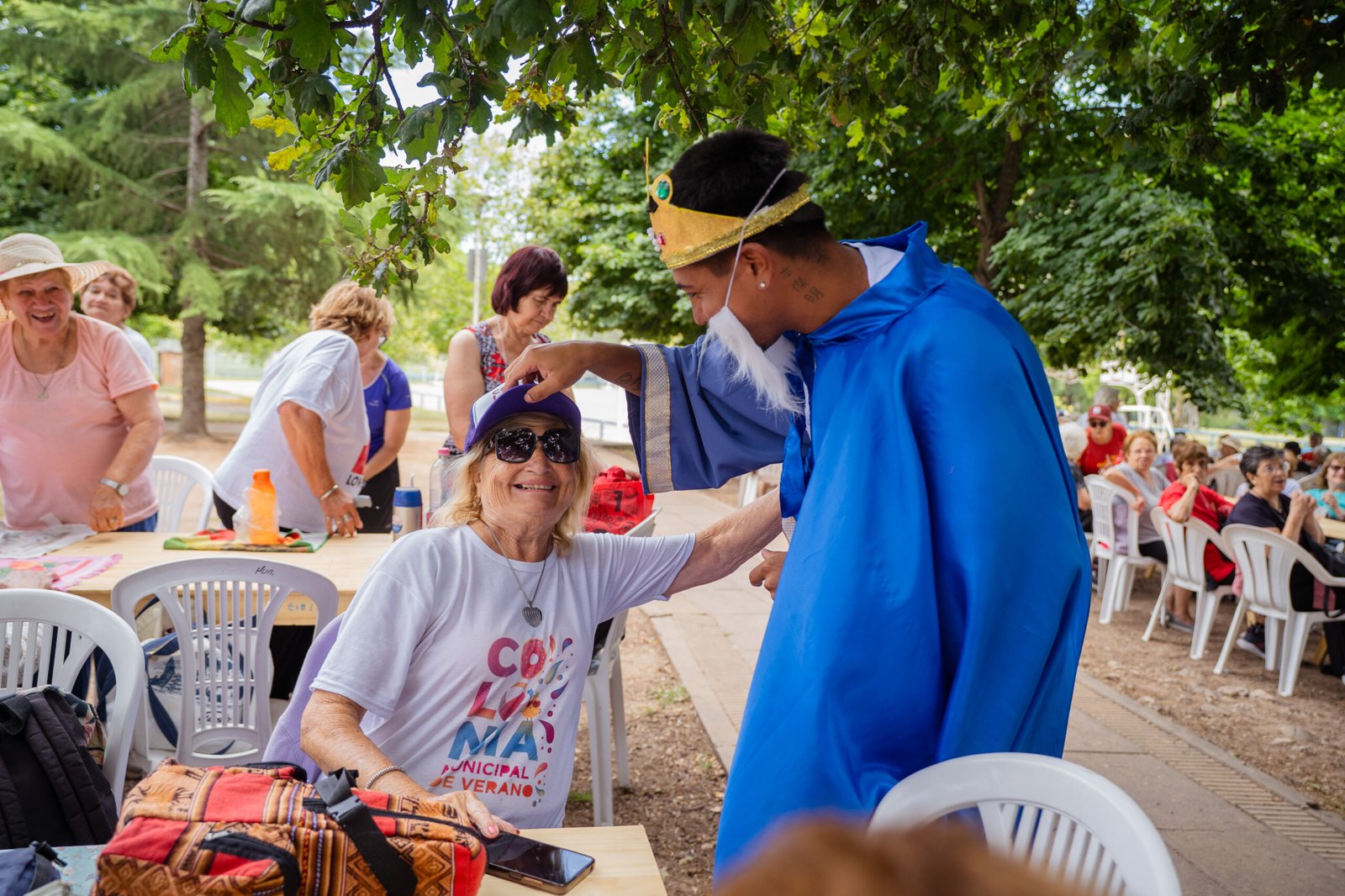 Previamente, en el comienzo de la jornada, los chicos y sus profesores recibieron la visita de los Reyes Magos, quienes llegaron con gorras de regalo para todos los colonos. Y esos mismos obsequios repartieron más tarde a los adultos mayores y personas con discapacidad que realizan sus actividades en el CCC.